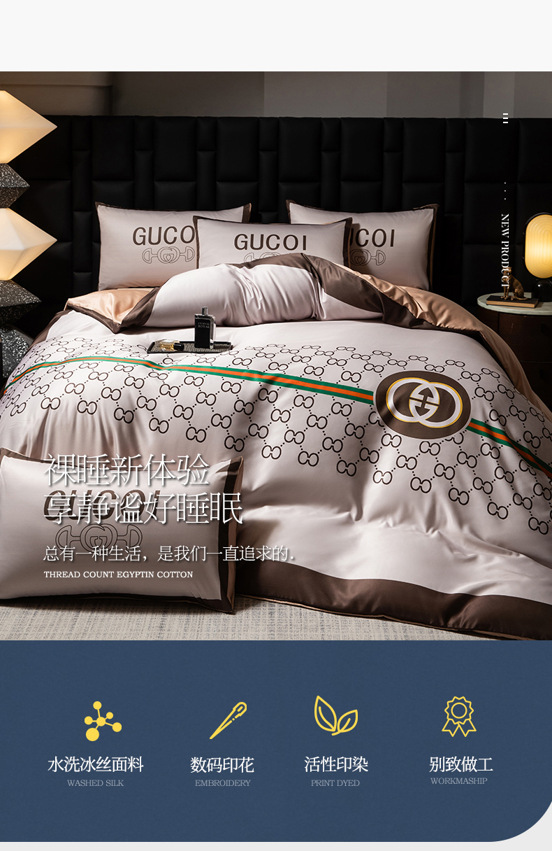 当前位置: 91家纺网 > 商品网购 > 床品套件 > 四件套 > 水洗真丝四件套 > 色鬼布艺 2025新款水洗真丝四件套水洗冰丝数码印花四件套 暮语
