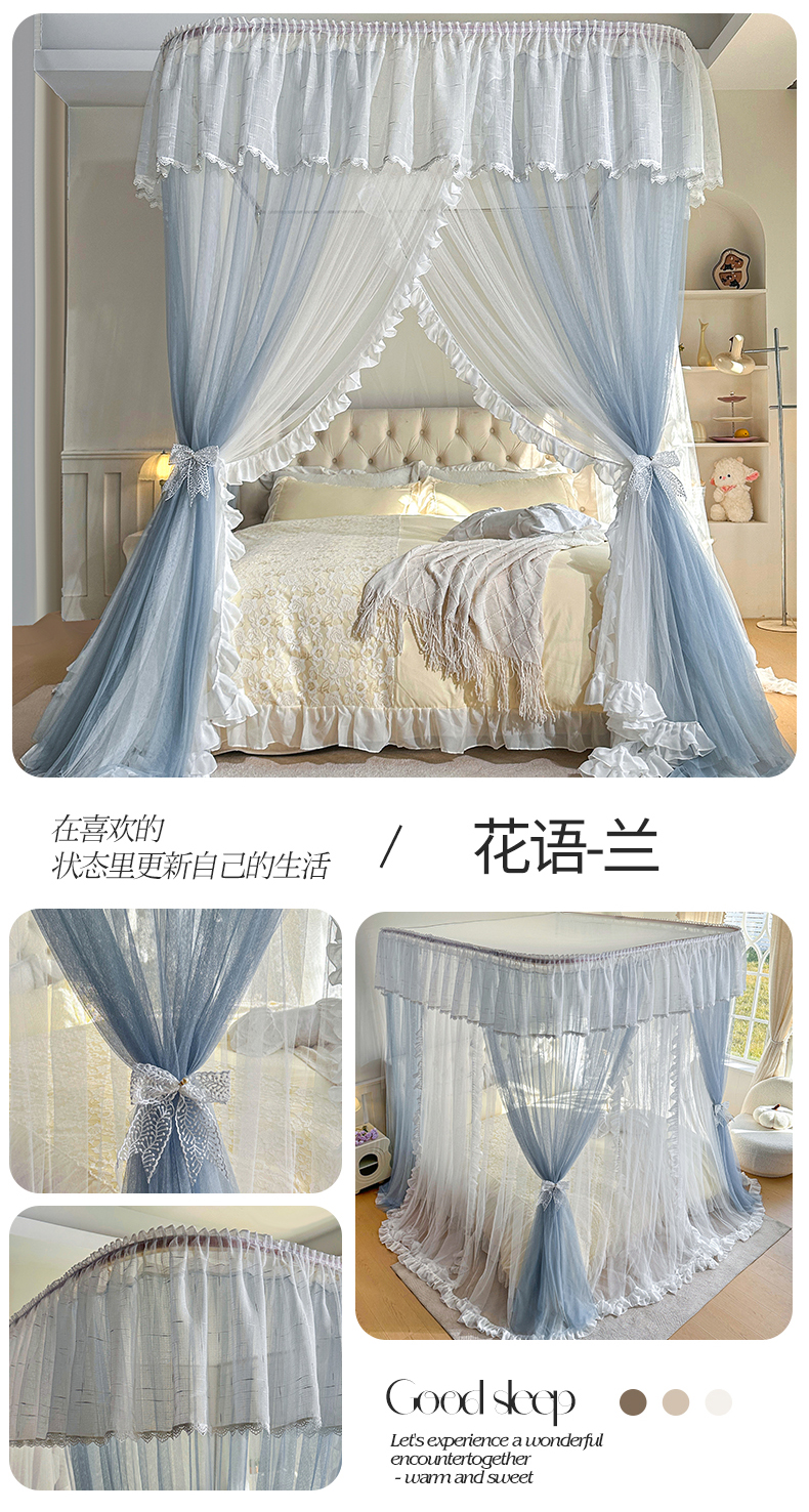 (总)夏彩 2025新款豪华宫廷蕾丝睡帐-88599,88599-公主白,88599-公主粉,88599-公主玉,88599-蓝灰色