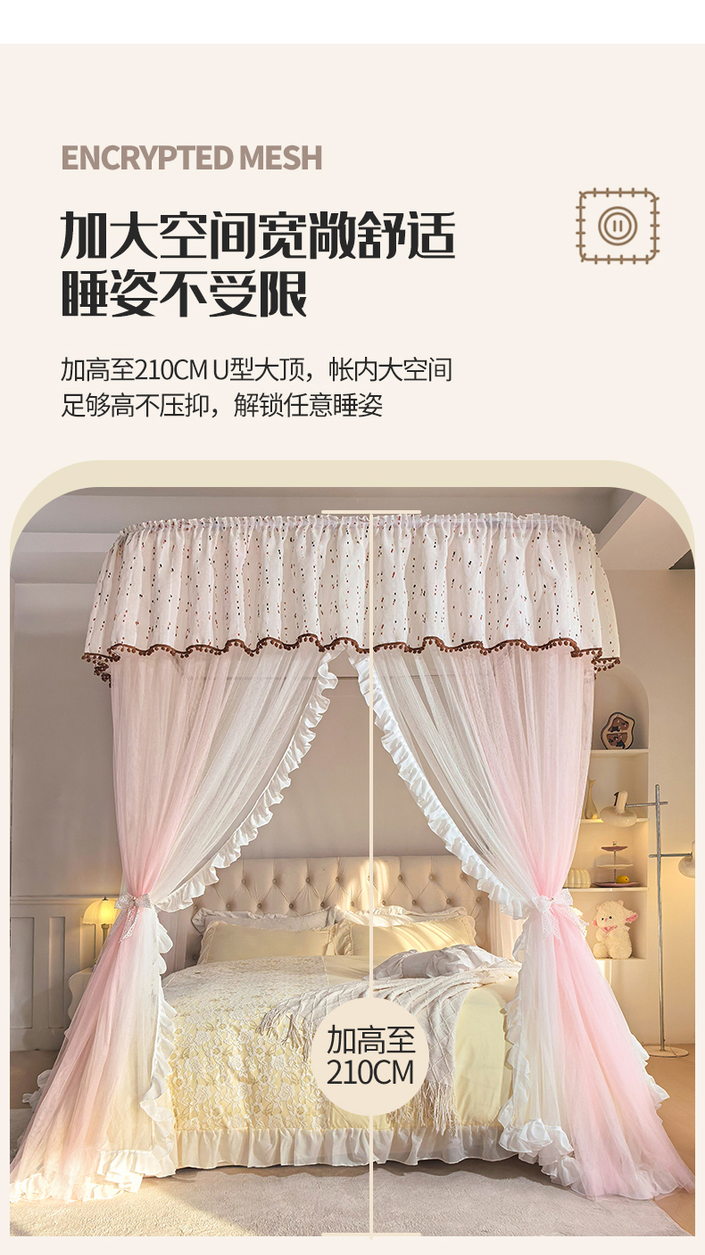 (总)夏彩 2025新款浪漫唯美T+U床笠式坐床外穿防摔蚊帐-88610,886610冰海蓝,886610极光白,886610浅粉玉,886610浅水蓝,886610蔷薇粉,886610杏仁黄,886610雅士灰