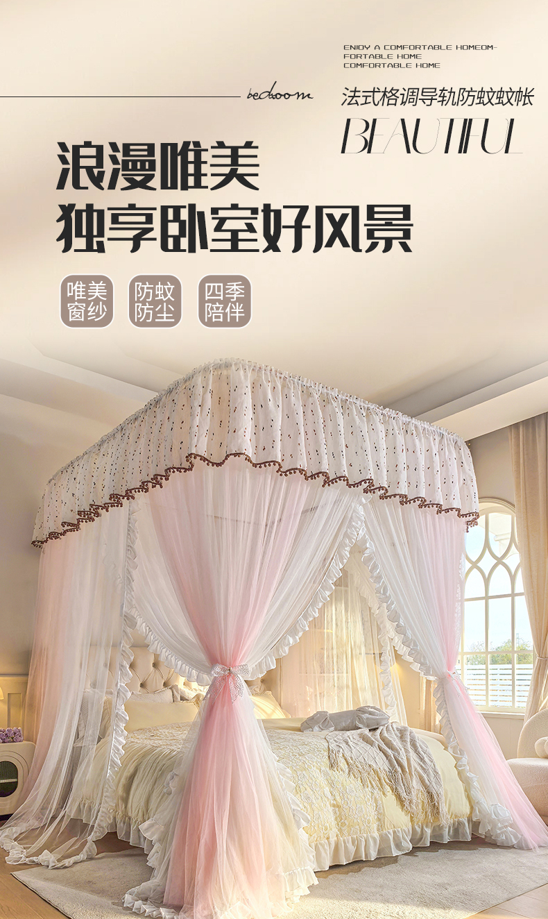 商品名称:(总)夏彩 2025新款加柔加密铝合金接口高度可调节双层窗帘式导轨蚊帐88619