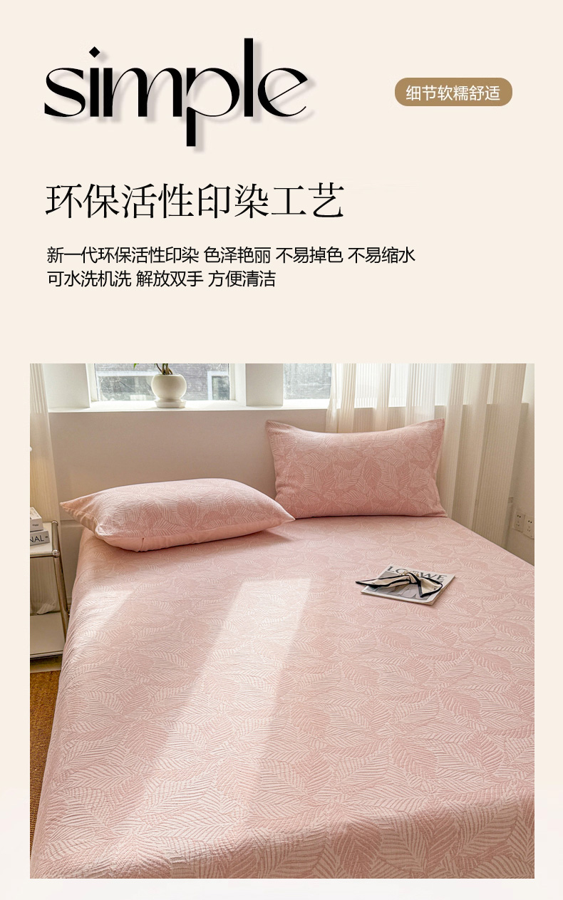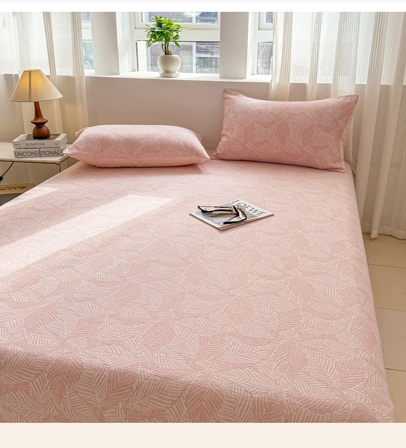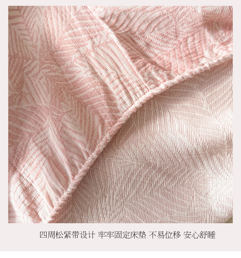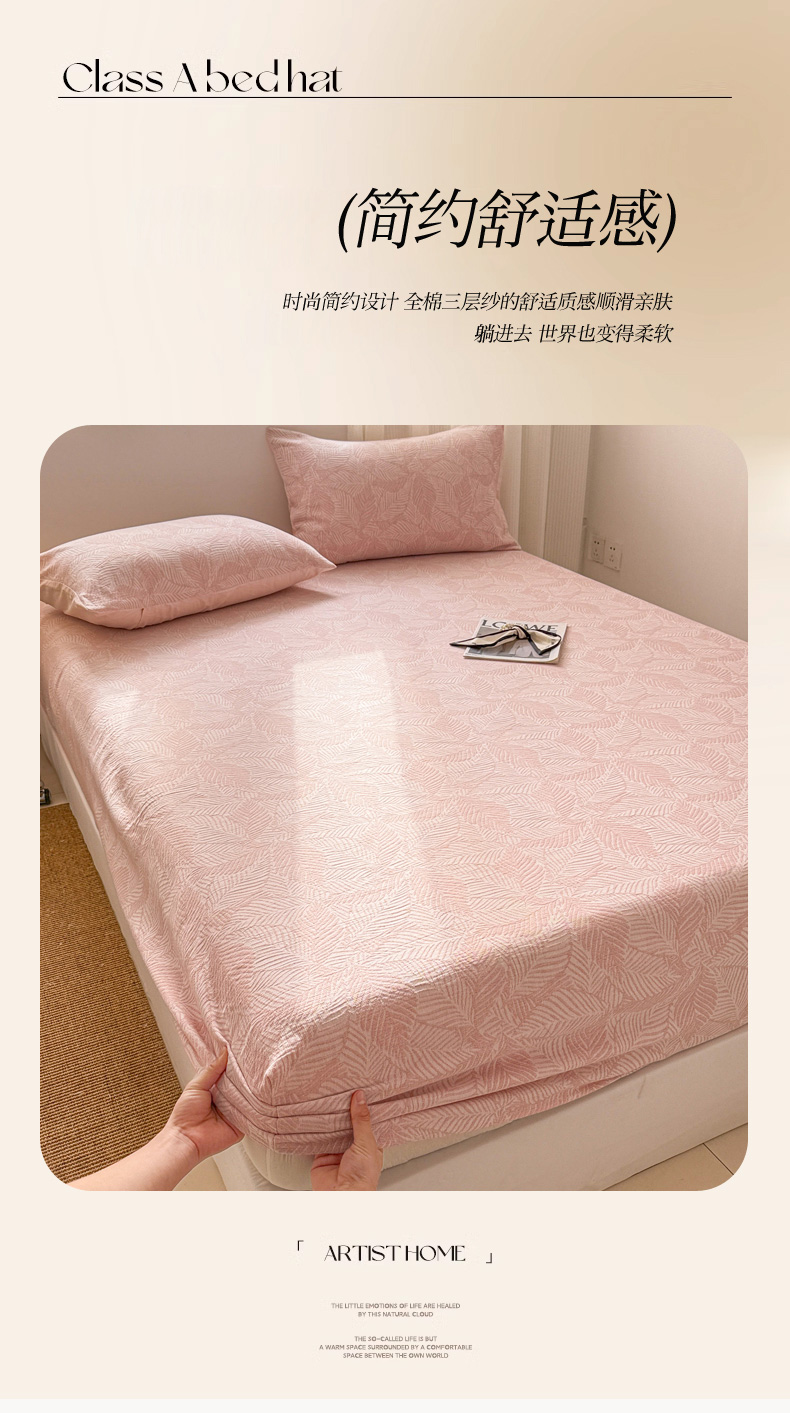 • 91家纺网 家纺一手货源 找家纺 眠博士 2025新款AB版简约时尚A类全棉三层纱系列单床笠 三层纱单床笠-幸运叶-粉