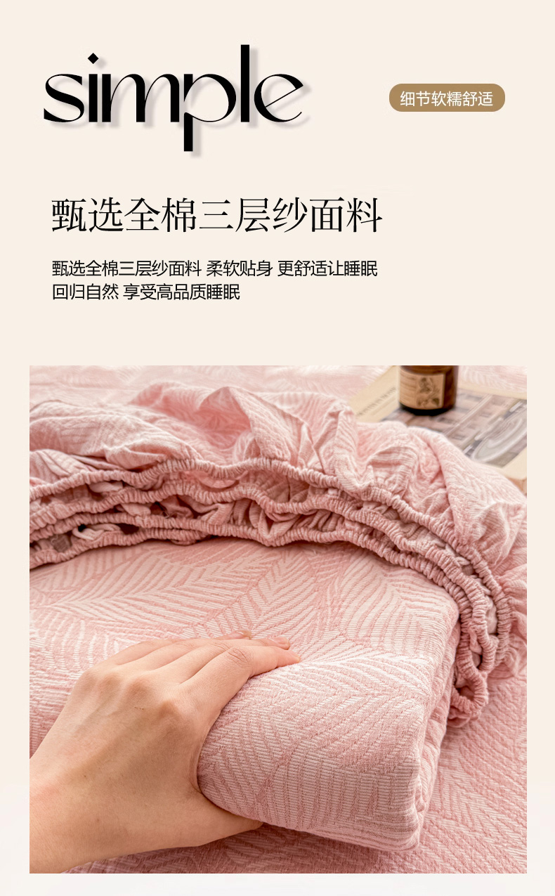 当前位置: 91家纺网 > 商品网购 > 床上用品 > 床笠 > 眠博士 2025新款AB版简约时尚A类全棉三层纱系列单床笠 三层纱单床笠-幸运叶-粉
