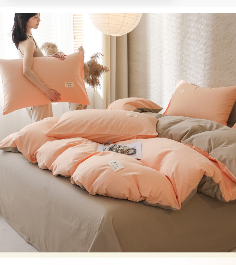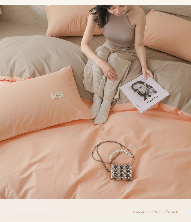 当前位置: 91家纺网 > 商品网购 > 床品套件 > 四件套 > 全棉普通四件套 > 眠博士 2025新款高支高密全棉双拼40支纯色四件套场景二 全棉拼色-橘色+杏色