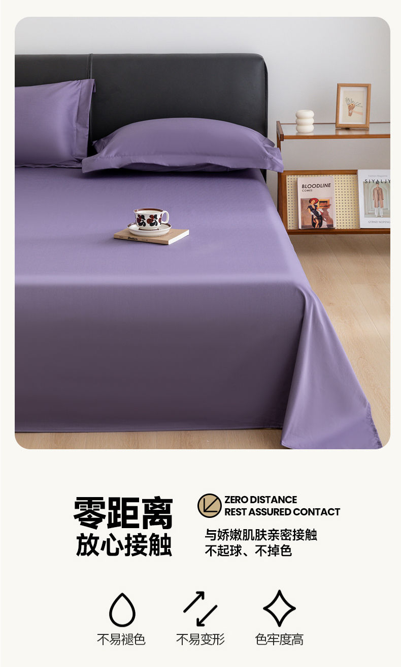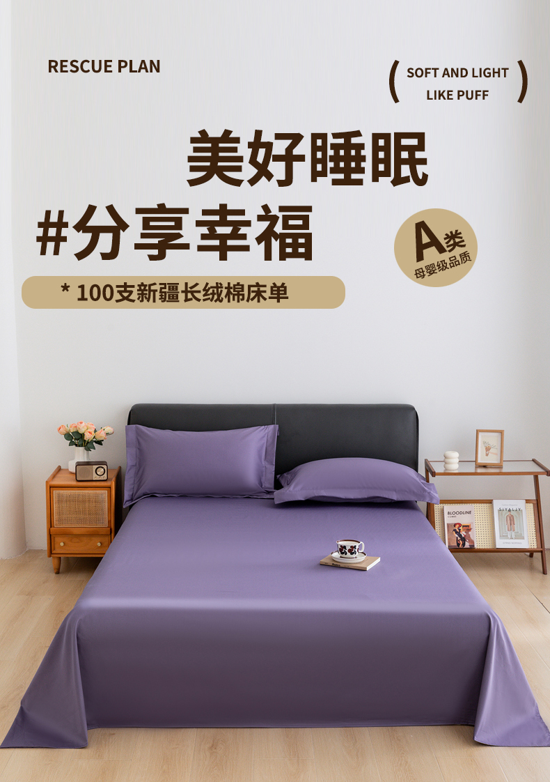 宝时兰 2025新款100支新疆长绒棉单品床单全棉枕套纯棉三件套 凝夜紫