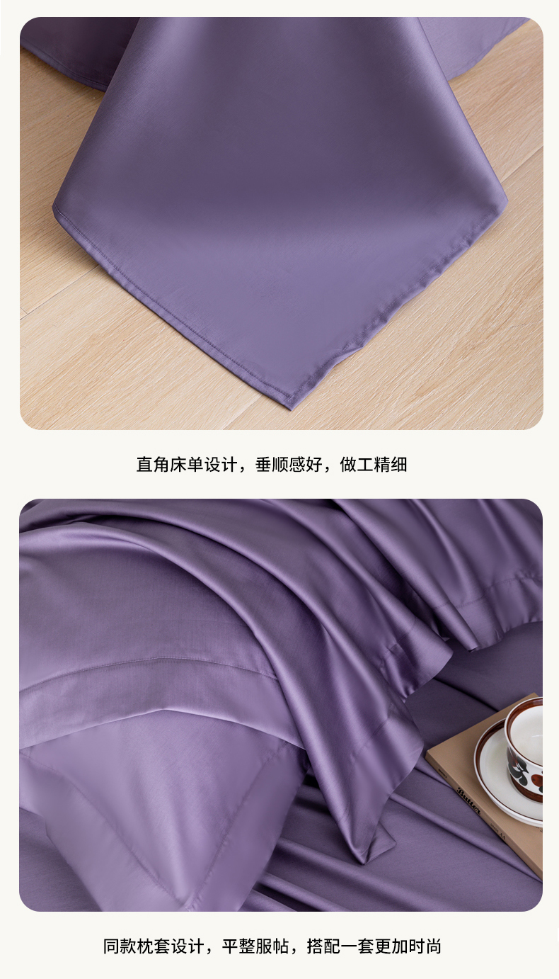 商品名称:宝时兰 2025新款100支新疆长绒棉单品床单全棉枕套纯棉三件套 凝夜紫