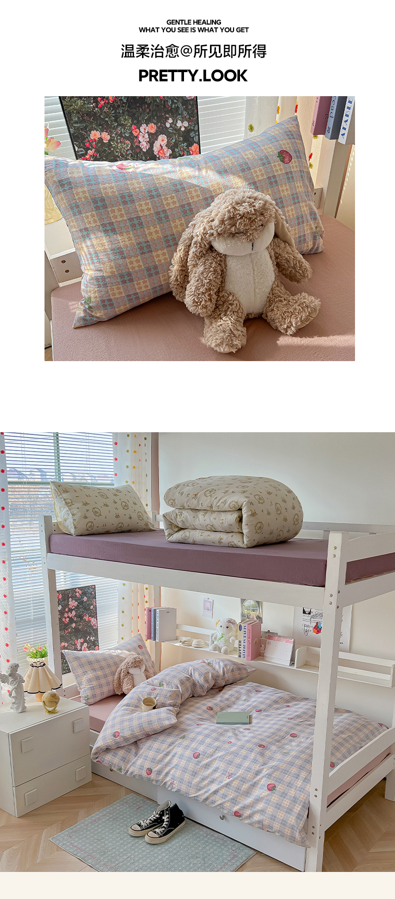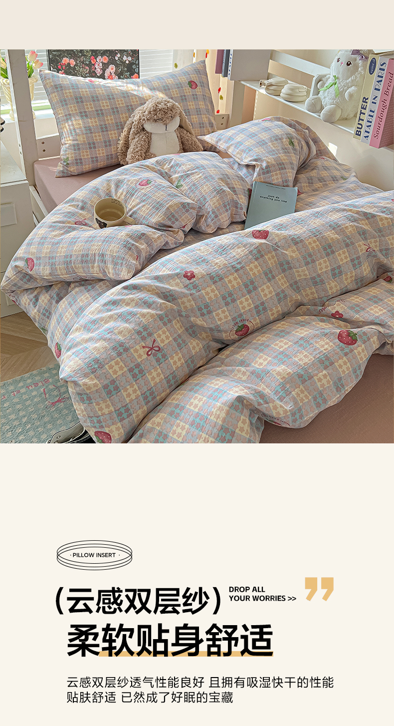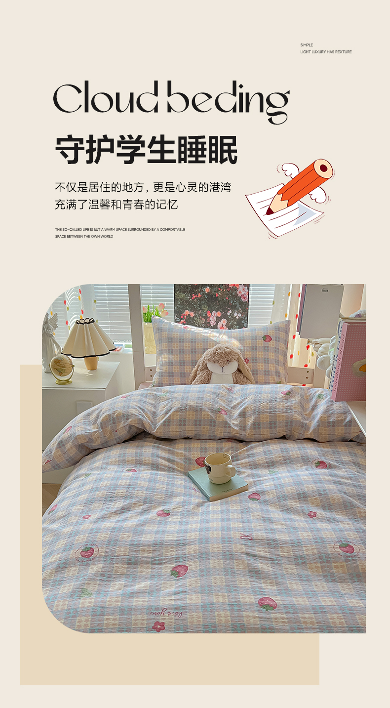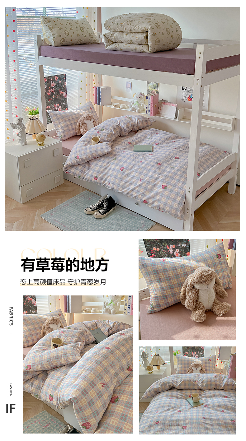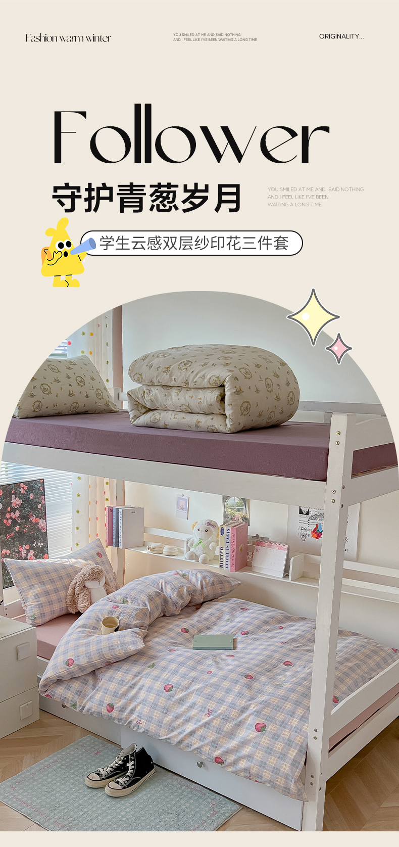 当前位置: 91家纺网 > 商品网购 > 床品套件 > 三件套 > 韩巢家纺 2025新款云感双层纱超柔裸睡级学生宿舍上下铺床单被套三件套-(提供卖家秀) 有草莓的地方