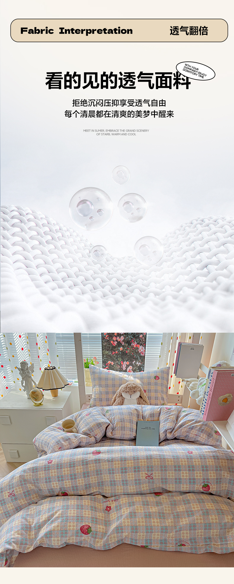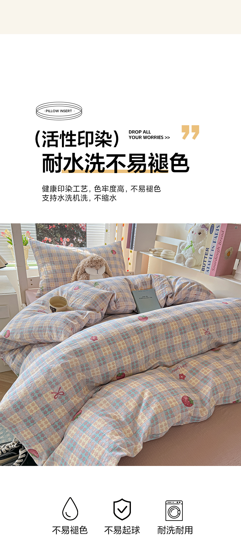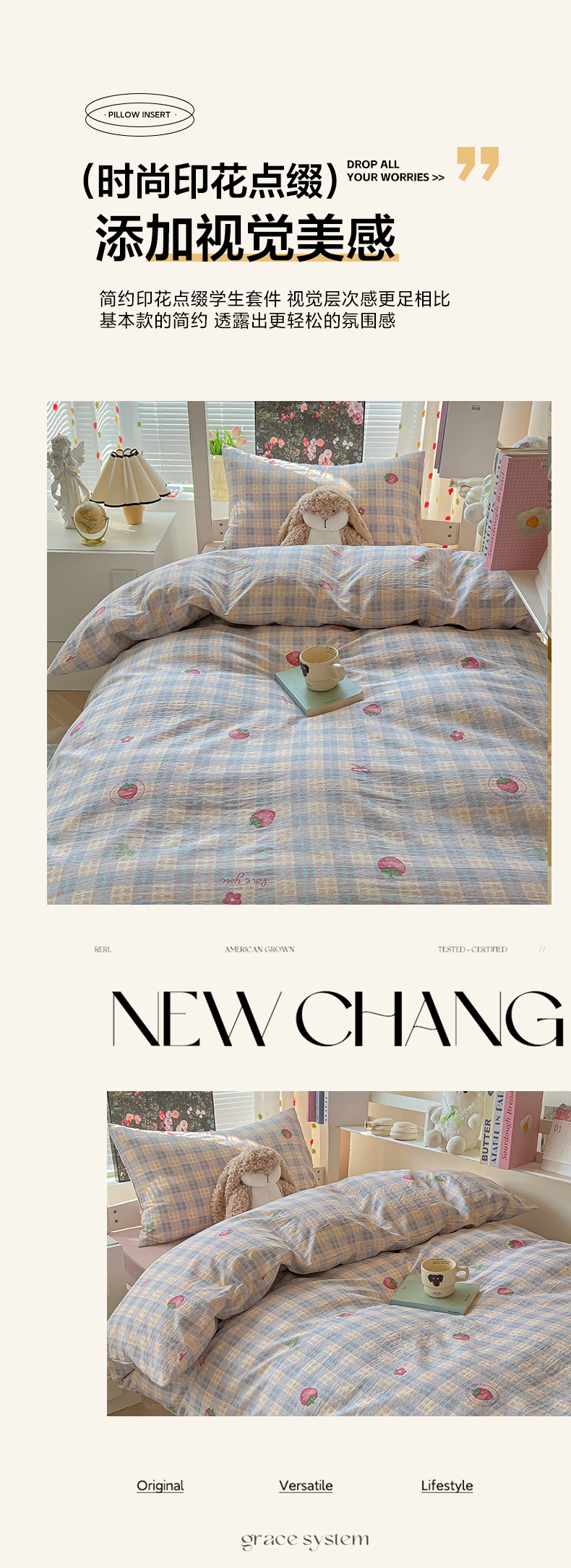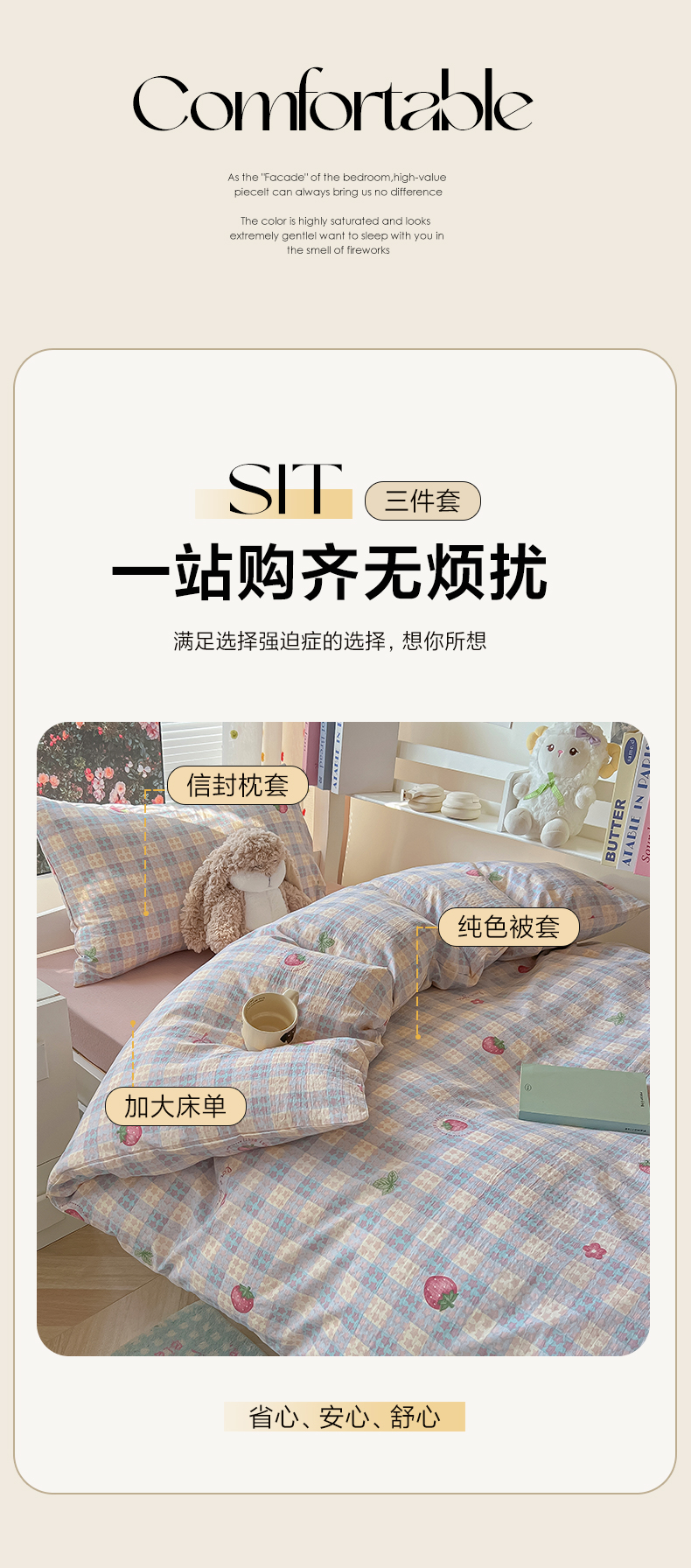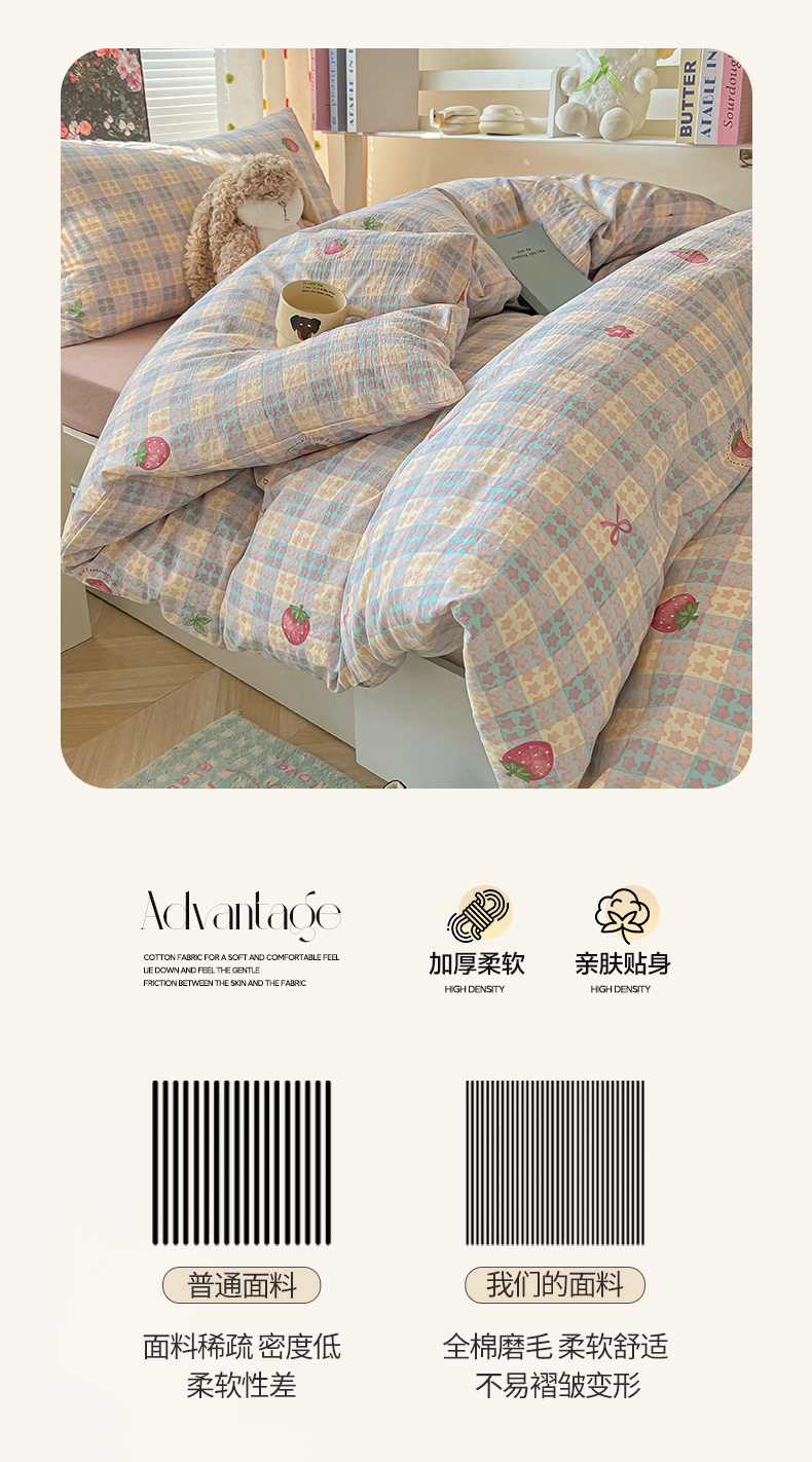 当前位置: 91家纺网 > 商品网购 > 床品套件 > 三件套 > 韩巢家纺 2025新款云感双层纱超柔裸睡级学生宿舍上下铺床单被套三件套-(提供卖家秀) 有草莓的地方