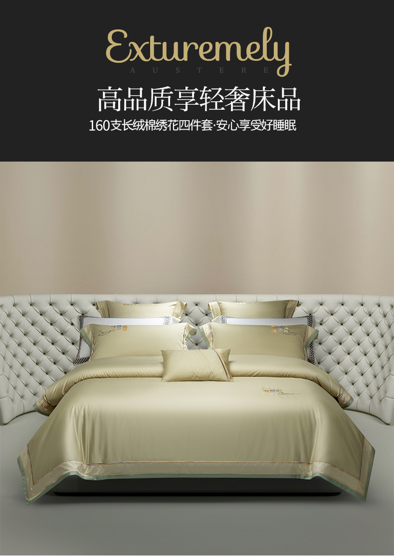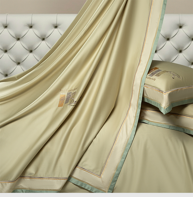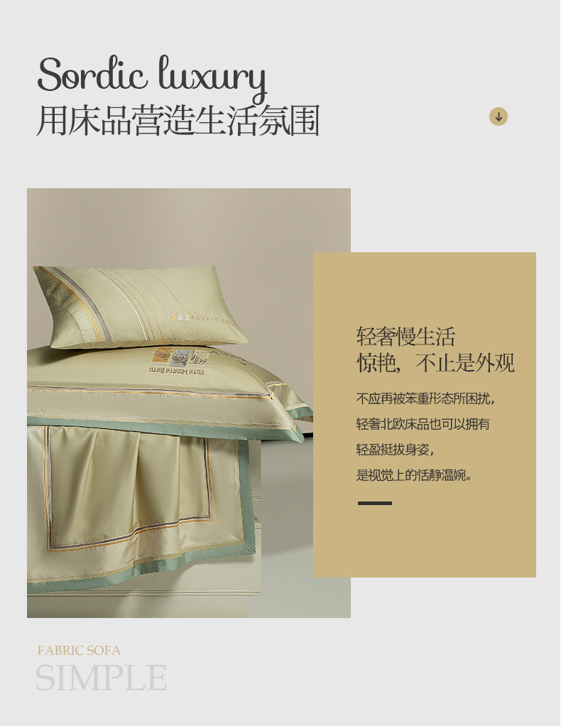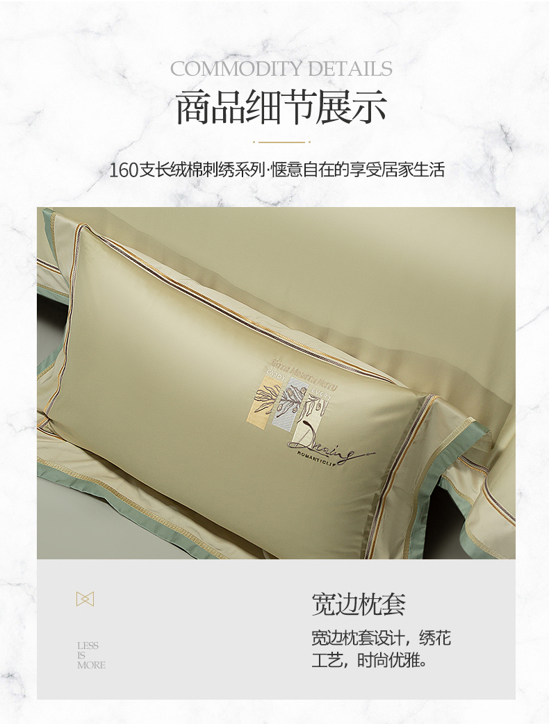 商品名称:高大尚婚庆馆 2025春夏新款 长绒棉高端绣花四件套-婉芙 油果绿