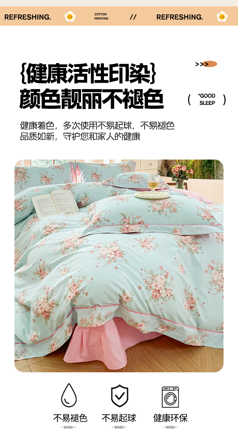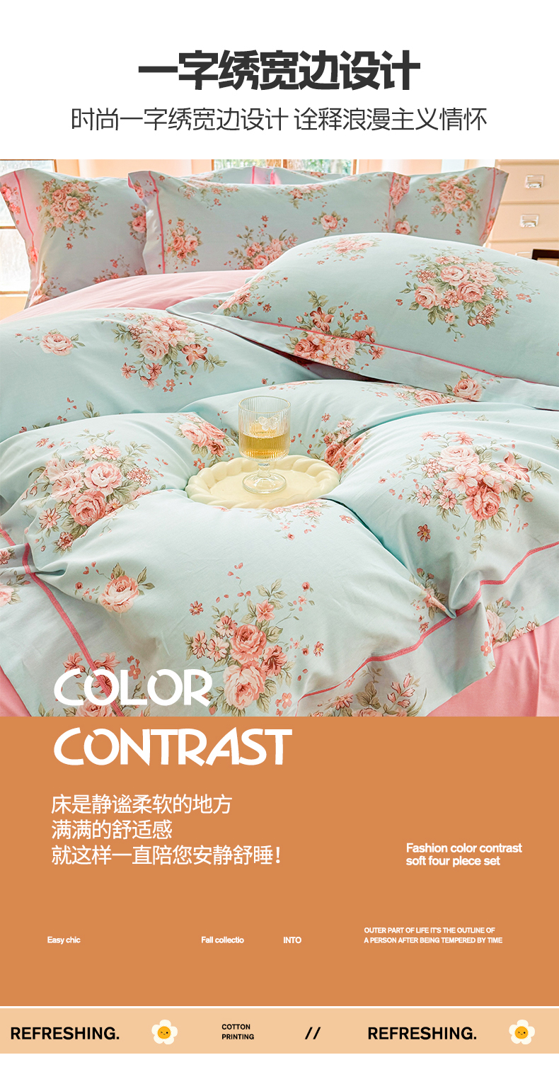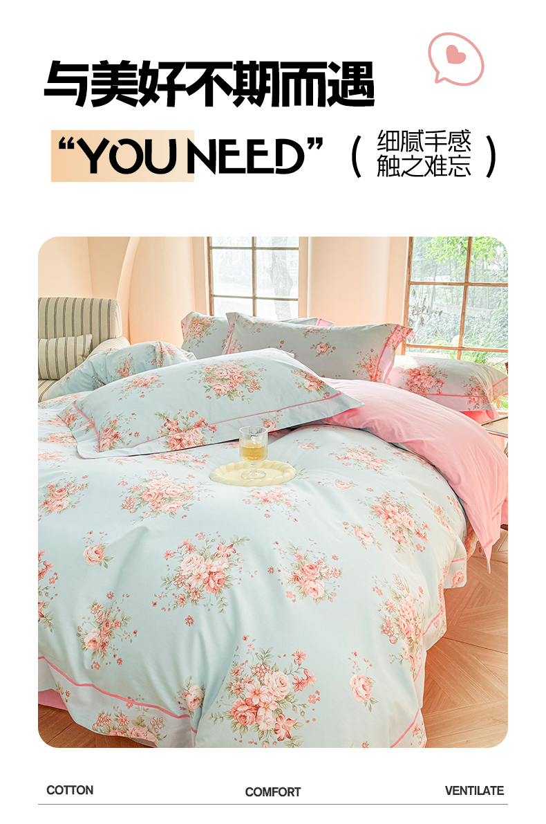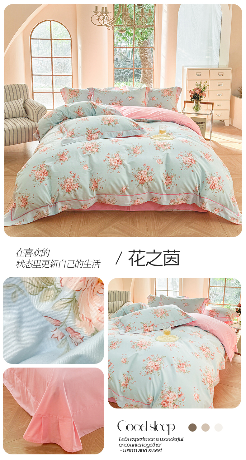 当前位置: 91家纺网 > 商品网购 > 床品套件 > 四件套 > 全棉普通四件套 > 7V 2025新款轻奢大宽边100%纯棉四件套133*76全棉喷气宽幅长绒棉被套床单床笠套件 花之茵