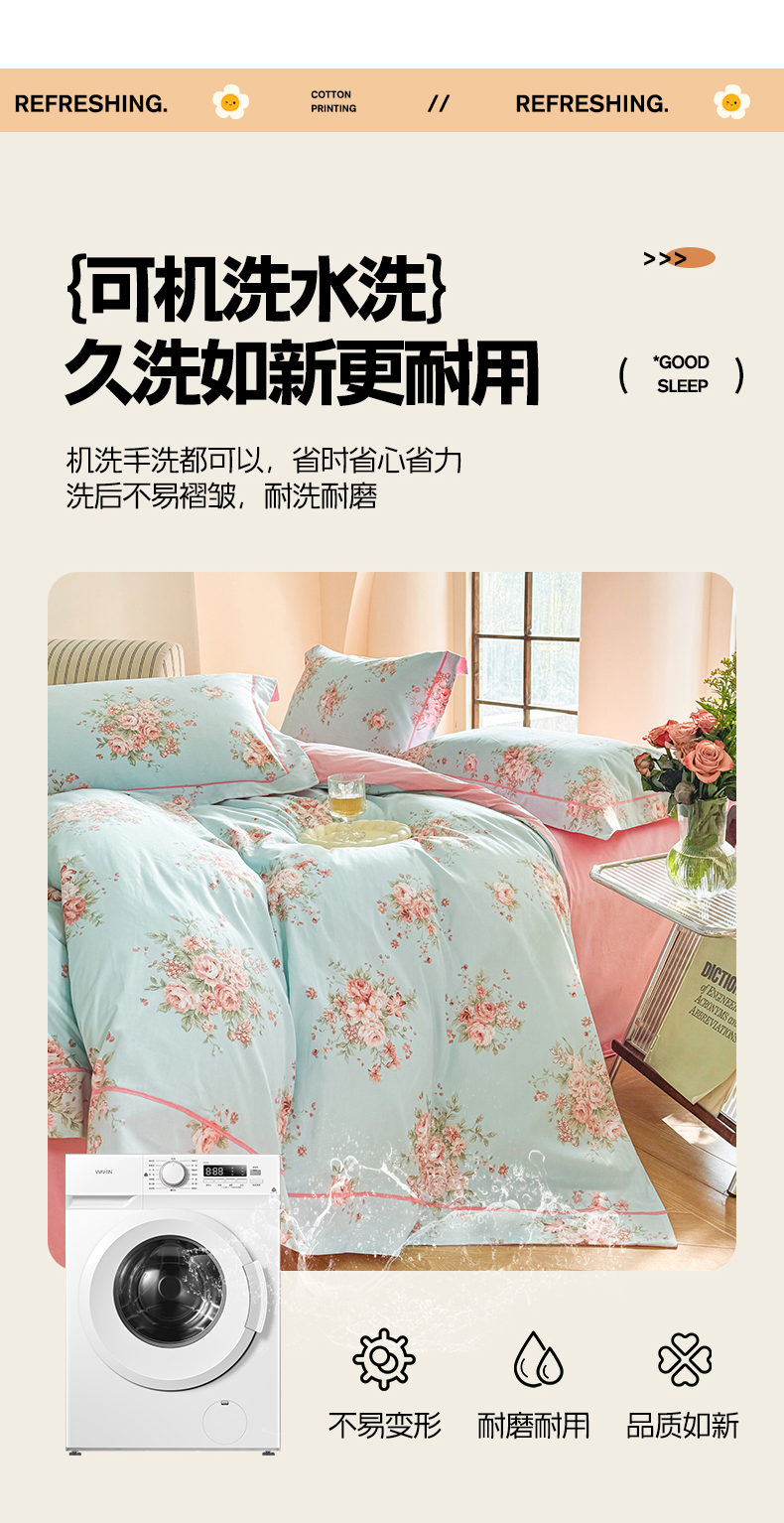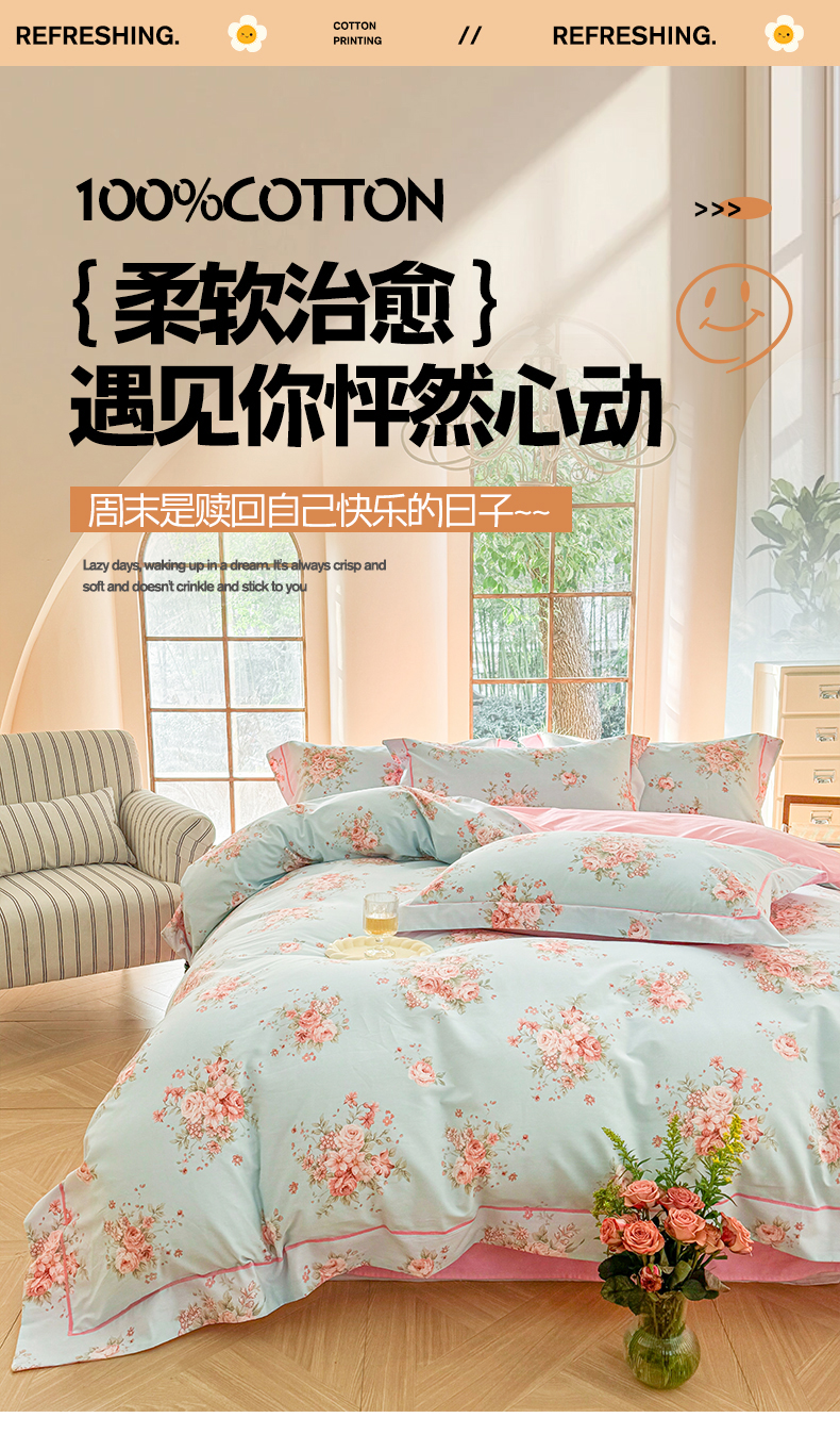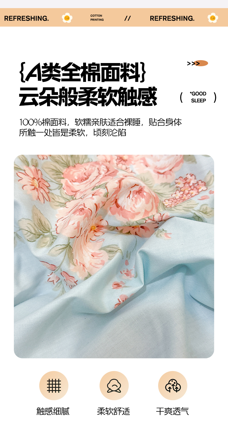 当前位置: 91家纺网 > 商品网购 > 床品套件 > 四件套 > 全棉普通四件套 > 7V 2025新款轻奢大宽边100%纯棉四件套133*76全棉喷气宽幅长绒棉被套床单床笠套件 花之茵