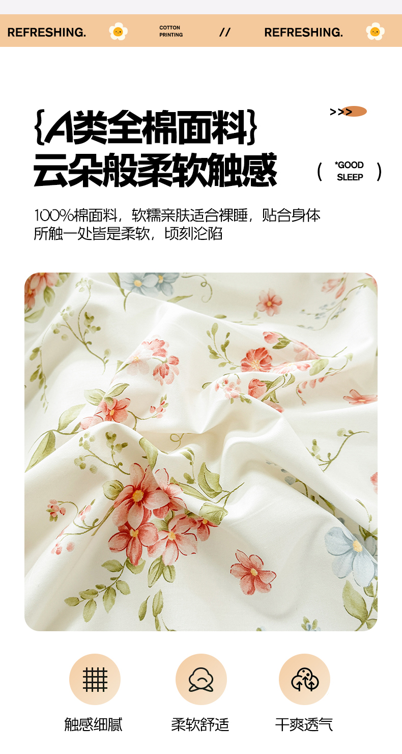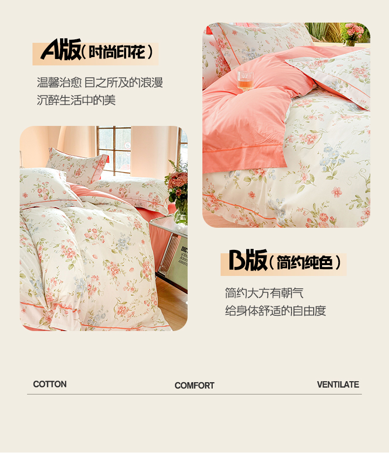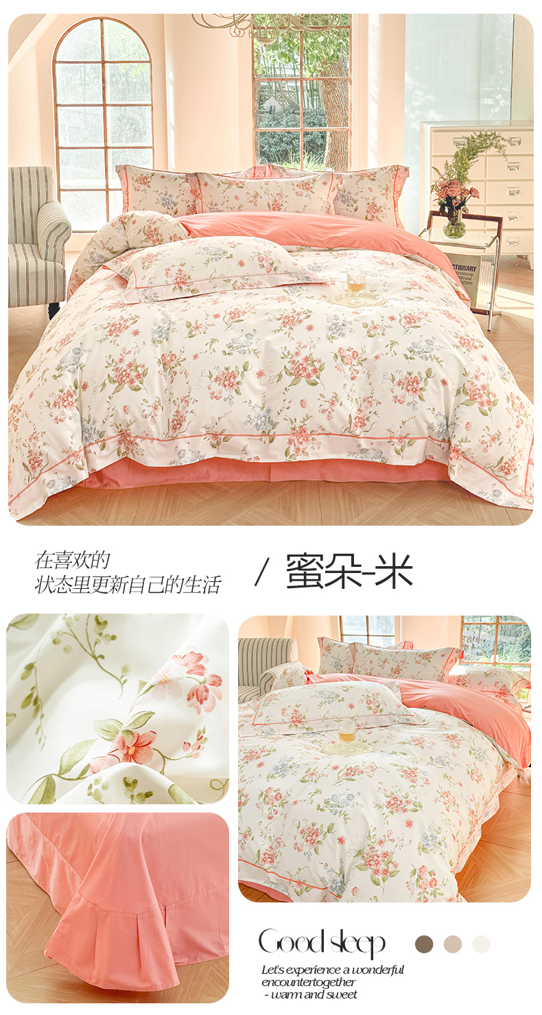 当前位置: 91家纺网 > 商品网购 > 床品套件 > 四件套 > 全棉普通四件套 > 7V 2025新款轻奢大宽边100%纯棉四件套133*76全棉喷气宽幅长绒棉被套床单床笠套件 蜜朵-米