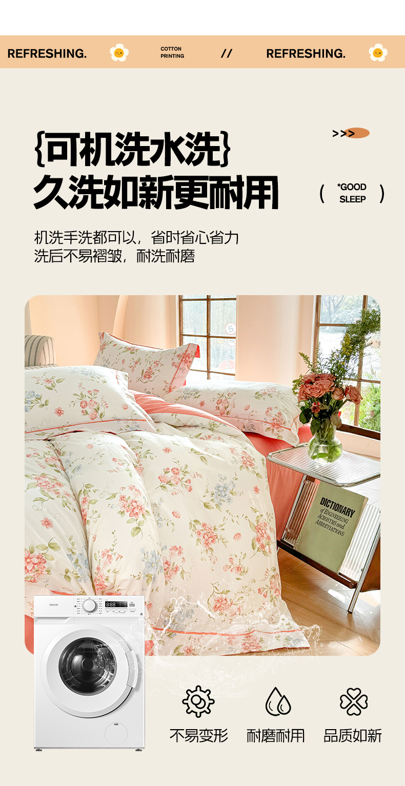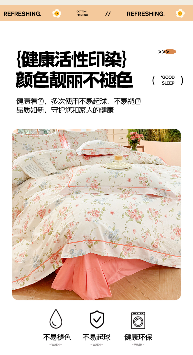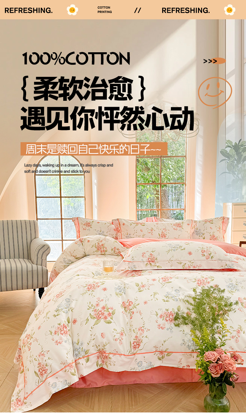 当前位置: 91家纺网 > 商品网购 > 床品套件 > 四件套 > 全棉普通四件套 > 7V 2025新款轻奢大宽边100%纯棉四件套133*76全棉喷气宽幅长绒棉被套床单床笠套件 蜜朵-米