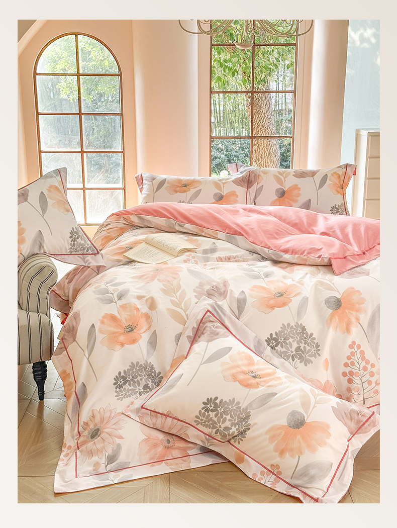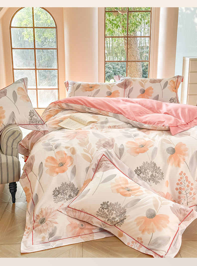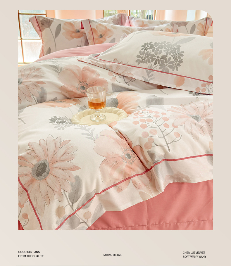 商品名称:7V 2025全棉被套133*76纯棉轻奢宽边单被套喷气长绒棉面料 春景-粉