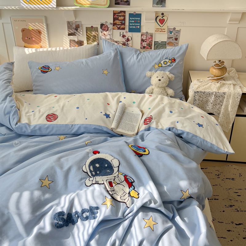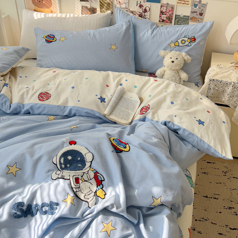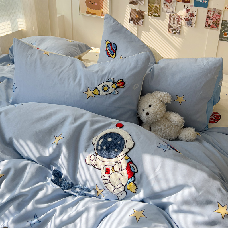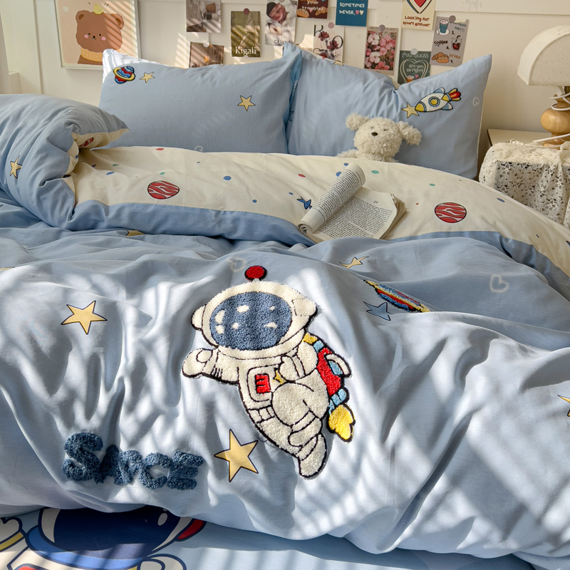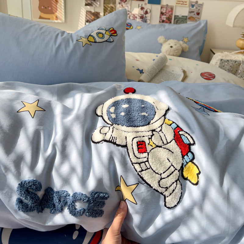 云锦家居 2025新款13370纯棉毛巾绣呆萌系列四件套 星球旅行