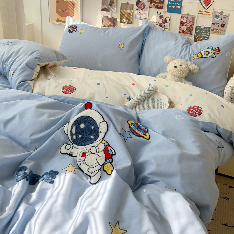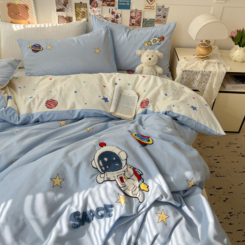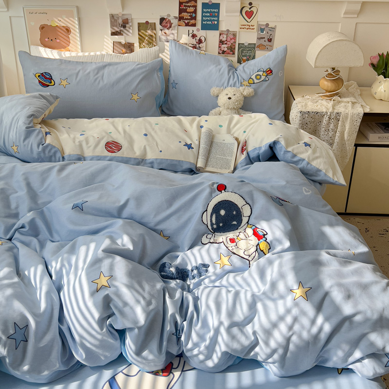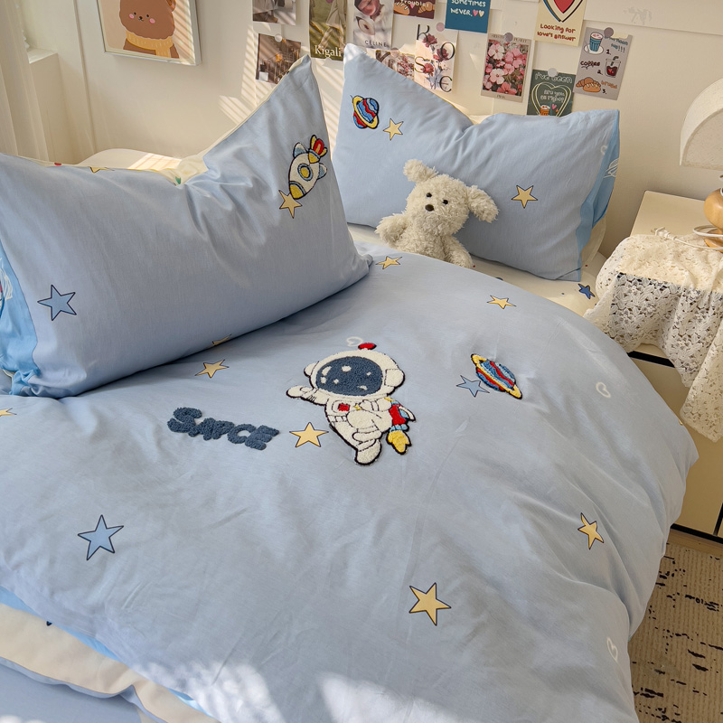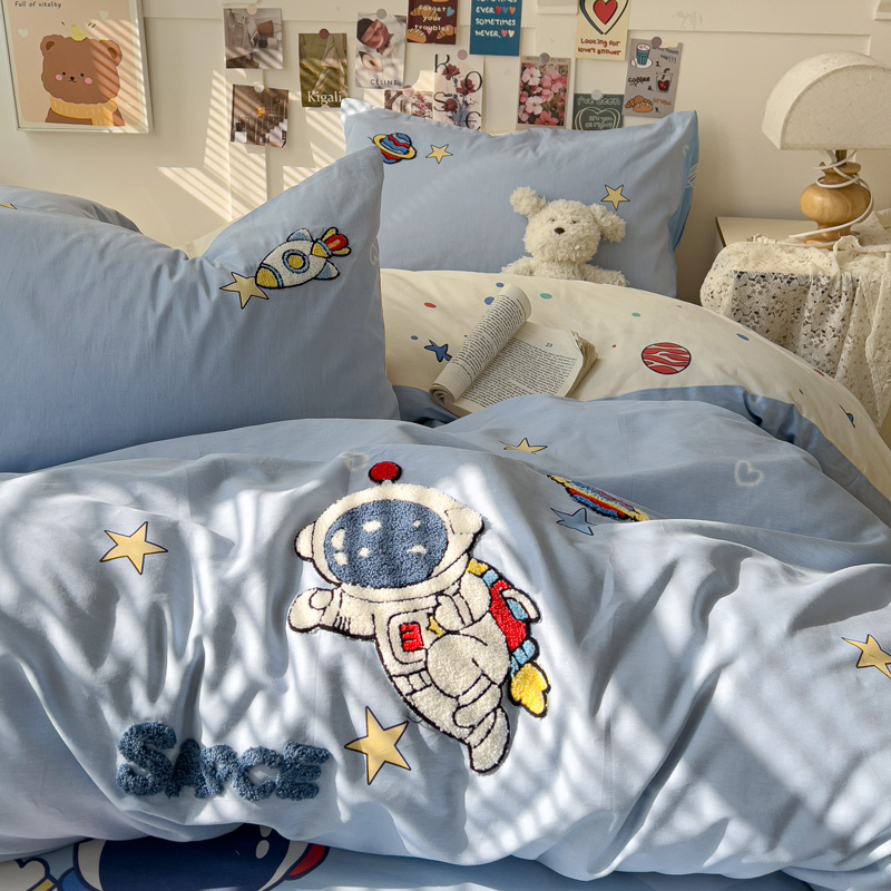 云锦家居 2025新款13370纯棉毛巾绣呆萌系列四件套 星球旅行