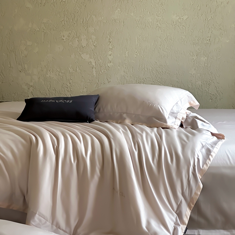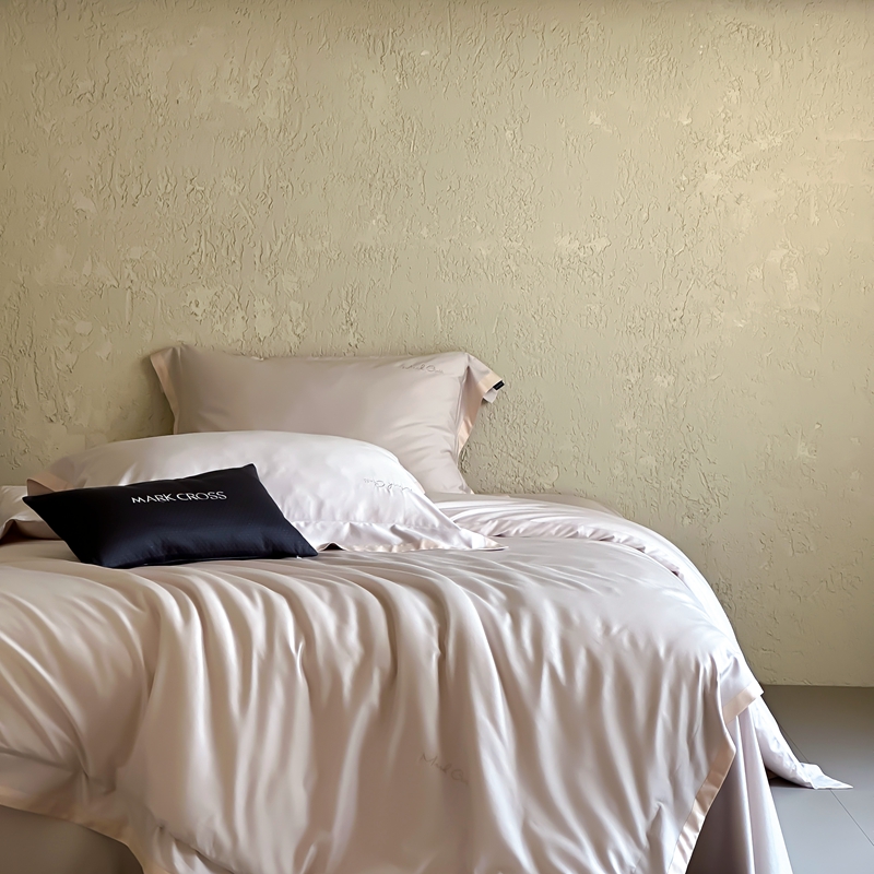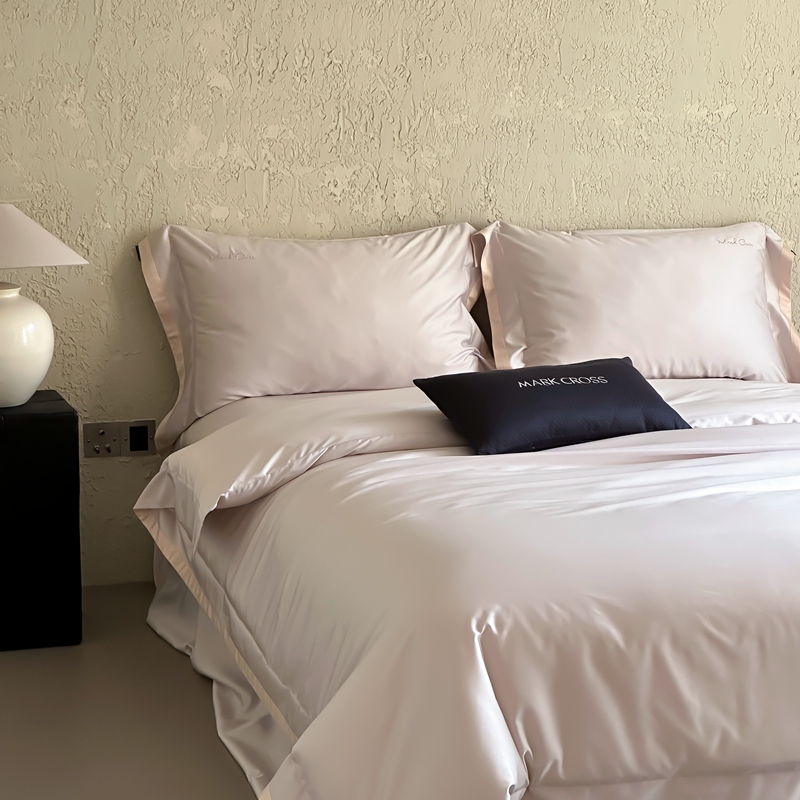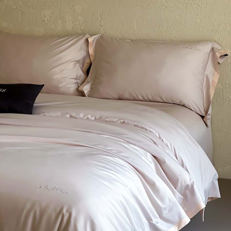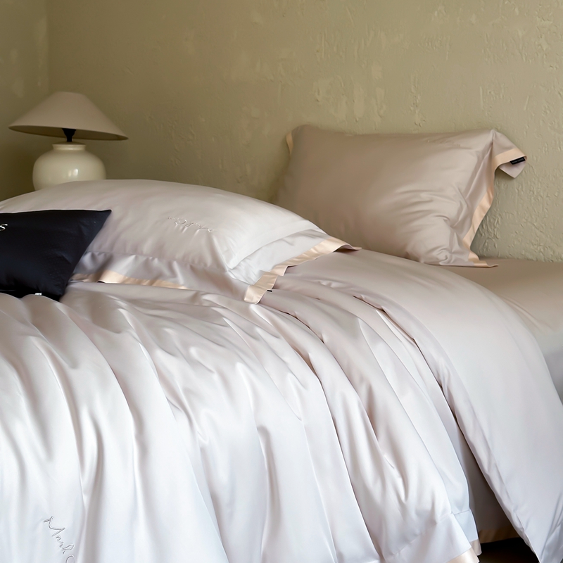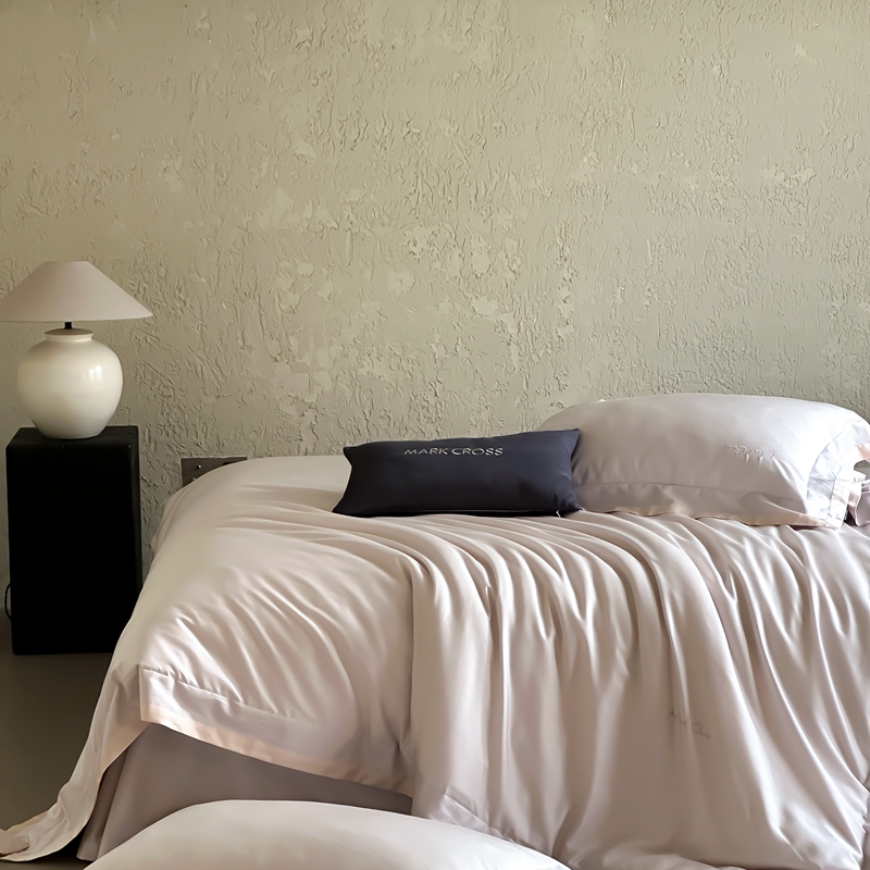 佳汐蓝家纺 2025新款灵动撞色飞边100支超细旦天丝棉四件套 珍珠灰