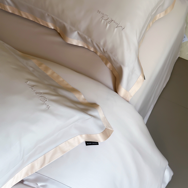 (总)佳汐蓝家纺 2026新款新疆长绒棉全棉纯棉轻奢五线刺绣四件套,初雪白,稻谷米,冷釉灰,汐雾蓝,薰衣紫,釉粉,朱砂红