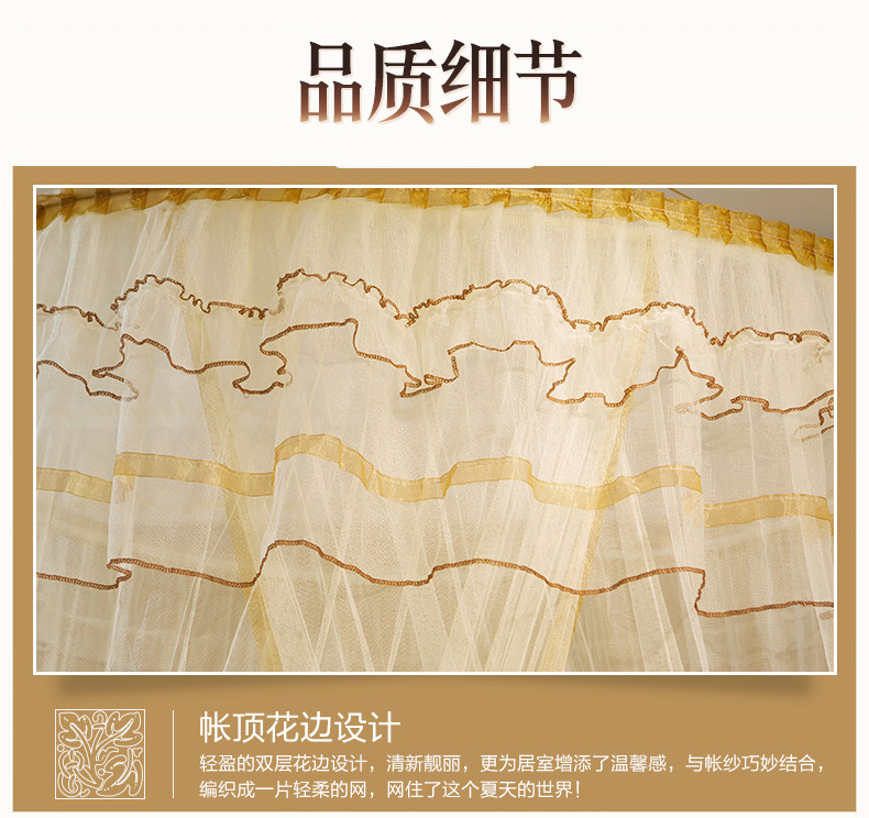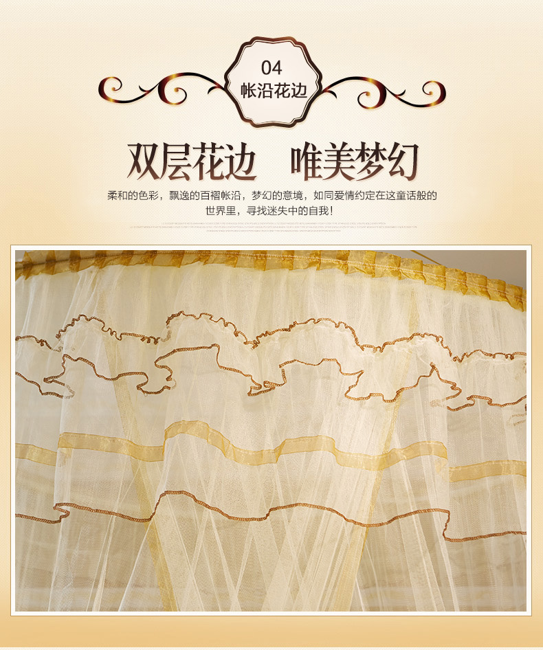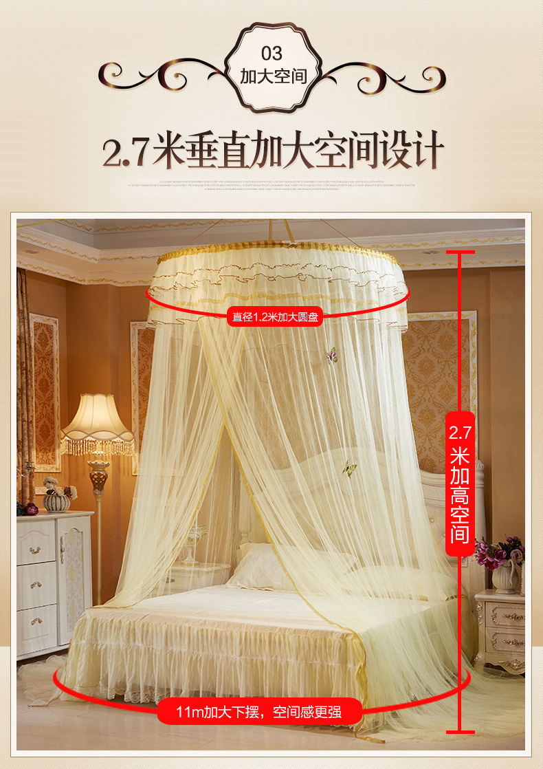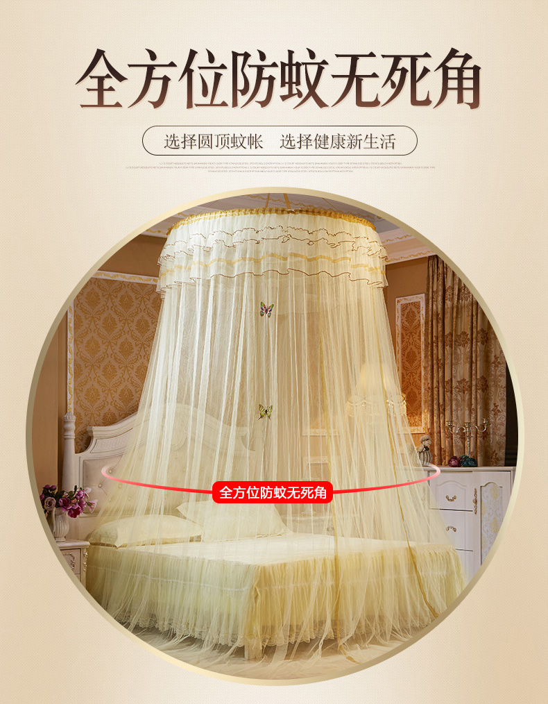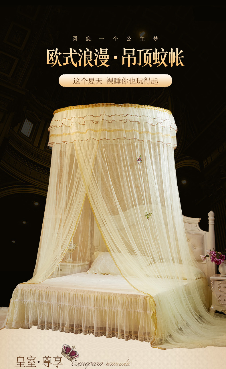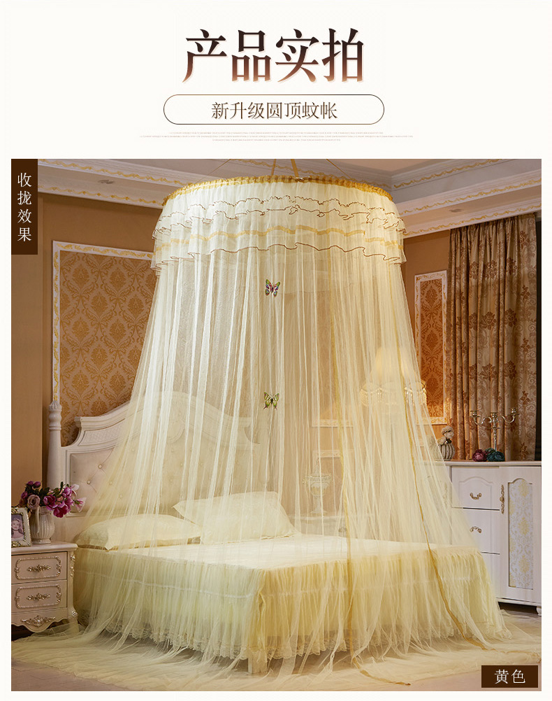 商品名称:宝莱利 2025年新款圆顶吊顶蚊帐-公主梦圆顶 黄色