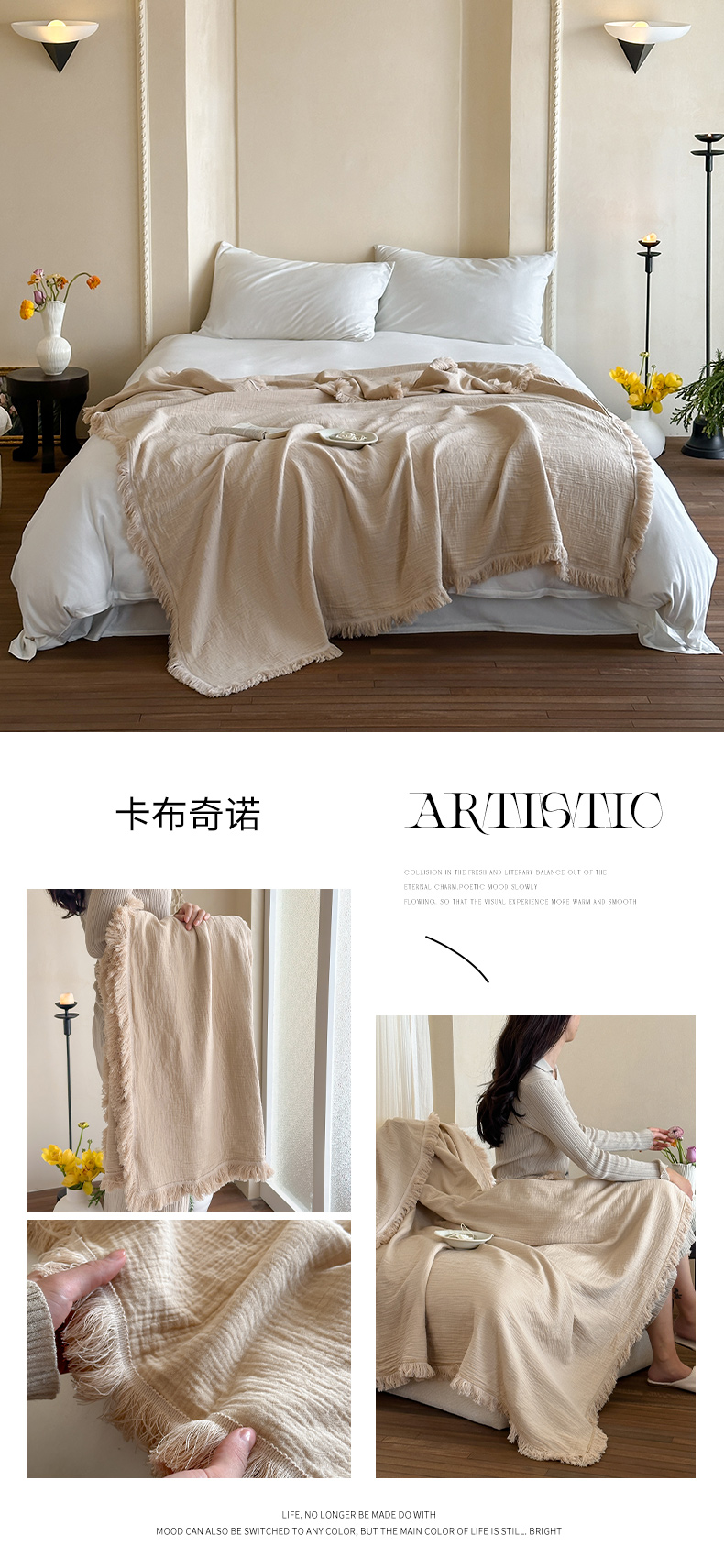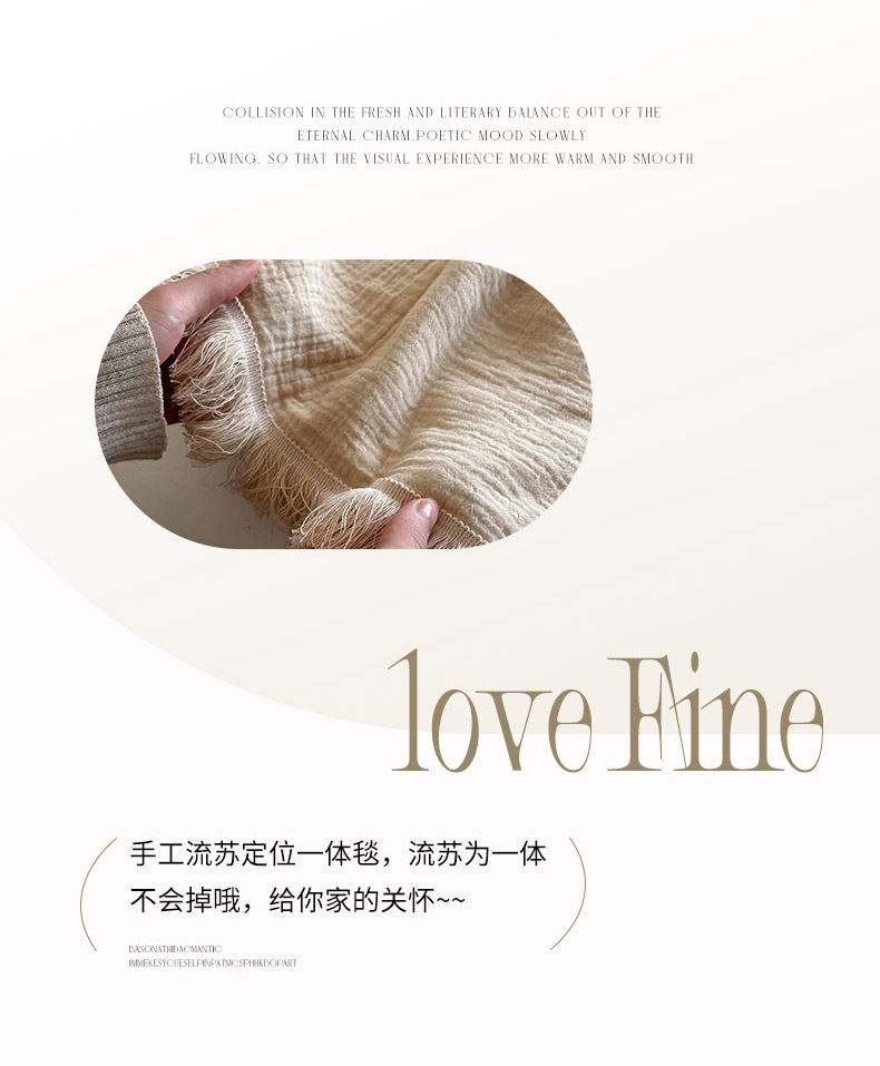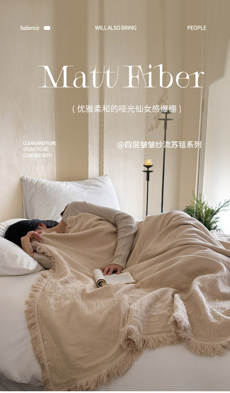 商品名称:三朵 2025新款全棉四层绉绉纱流苏多功能毯 卡布奇诺