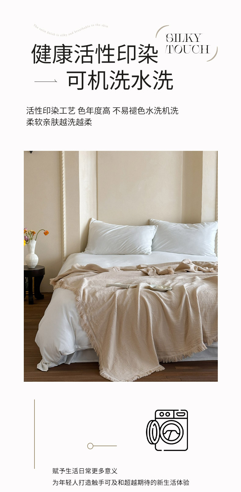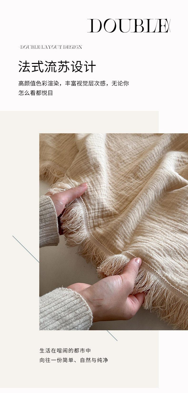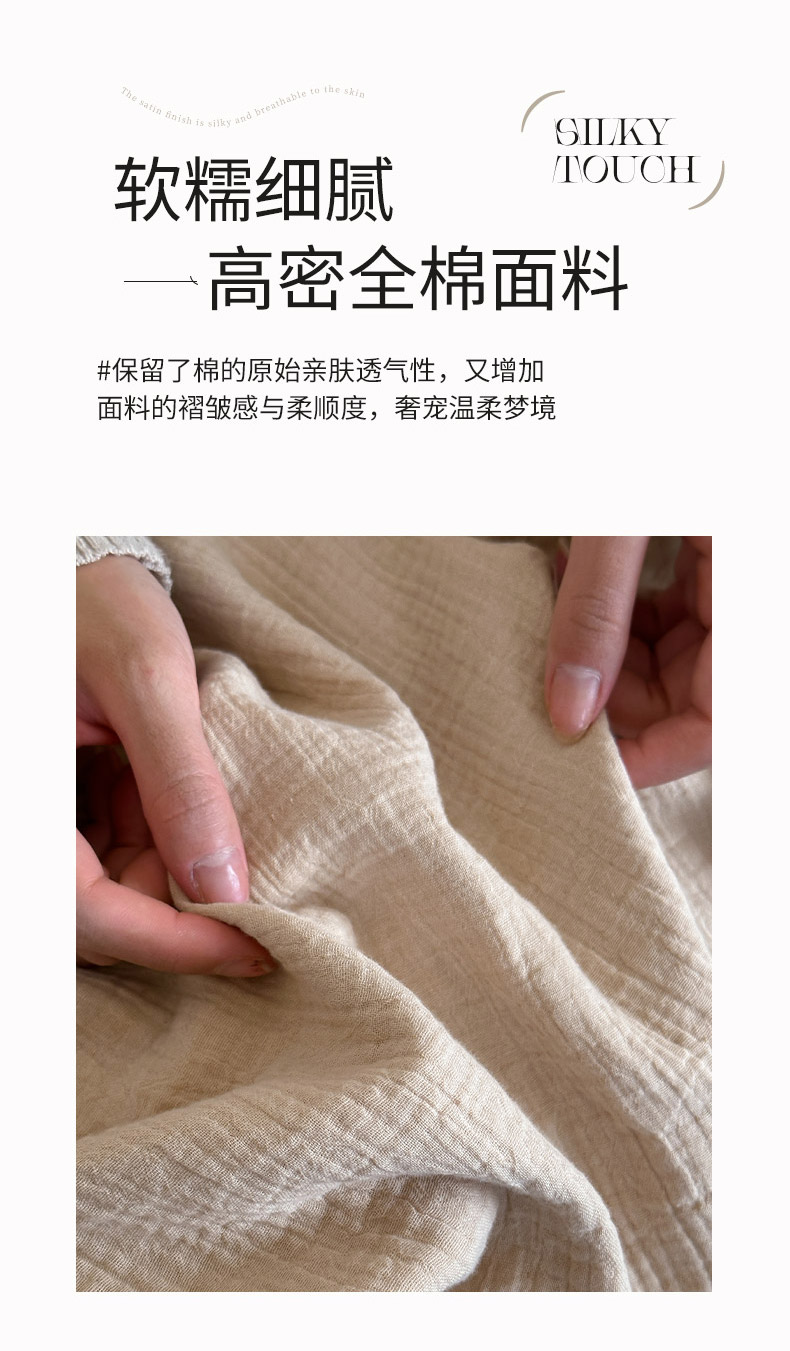 商品名称:三朵 2025新款全棉四层绉绉纱流苏多功能毯 卡布奇诺