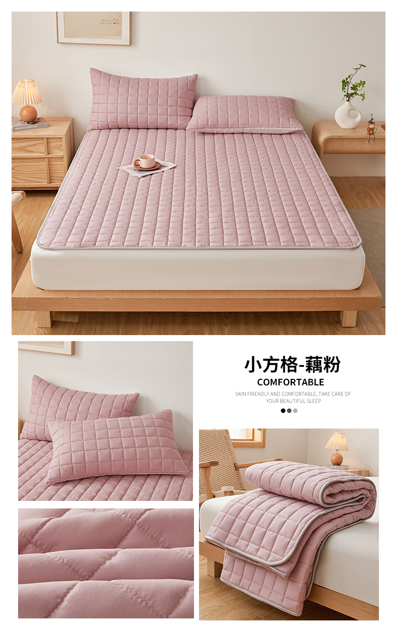 商品名称:兄弟坊 水洗原棉夹棉床垫 床褥 床护垫 学生床垫 小方格-藕粉