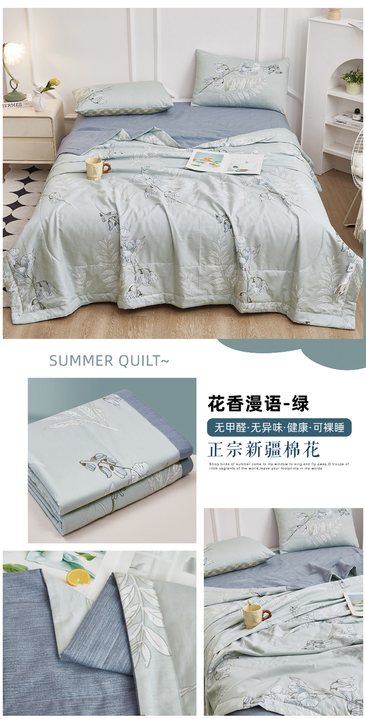 商品名称:尊妙被业 2025新款里外全棉印花棉花被纯棉夏被夏凉被全棉棉花夏凉被花香漫语-绿