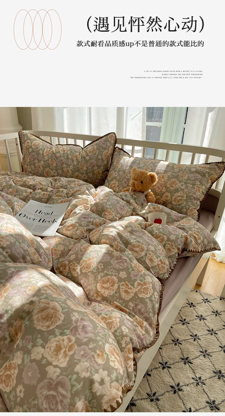 (总)三朵家纺 2024新款3D立体浮雕花边保暖加厚四件套,馥郁芳芬,花园小径粉,花园小径黄,绿野仙踪,暖暖花语