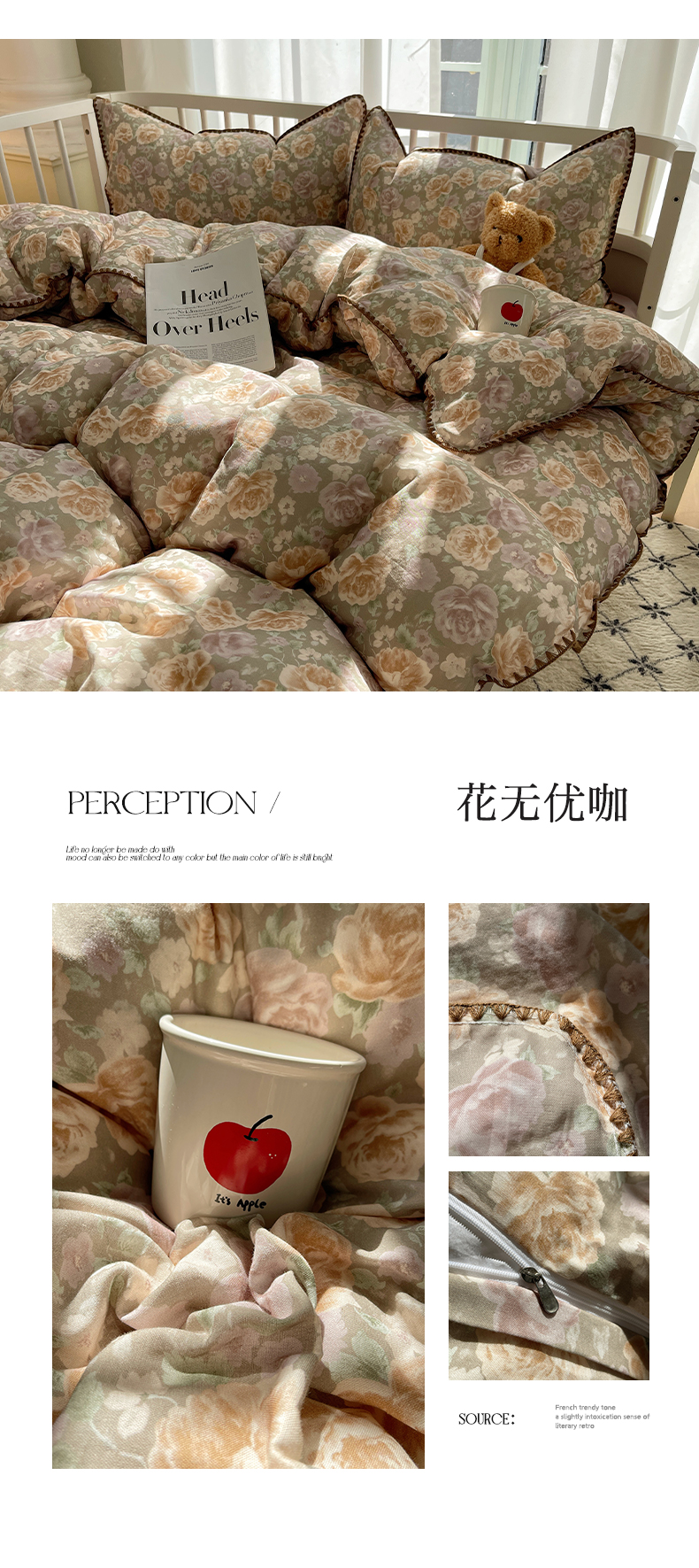 (总)三朵家纺 2026新款水洗棉碎花INS博主风混搭全棉四件套,漫花,莫里,南乔