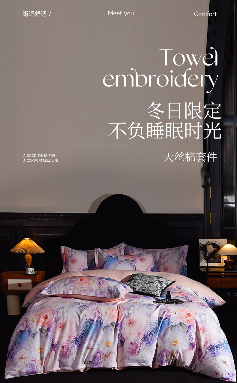 商品名称:德比尔斯 2025新款天丝棉印花四件套(全网控价不低于188元) 遇见花期