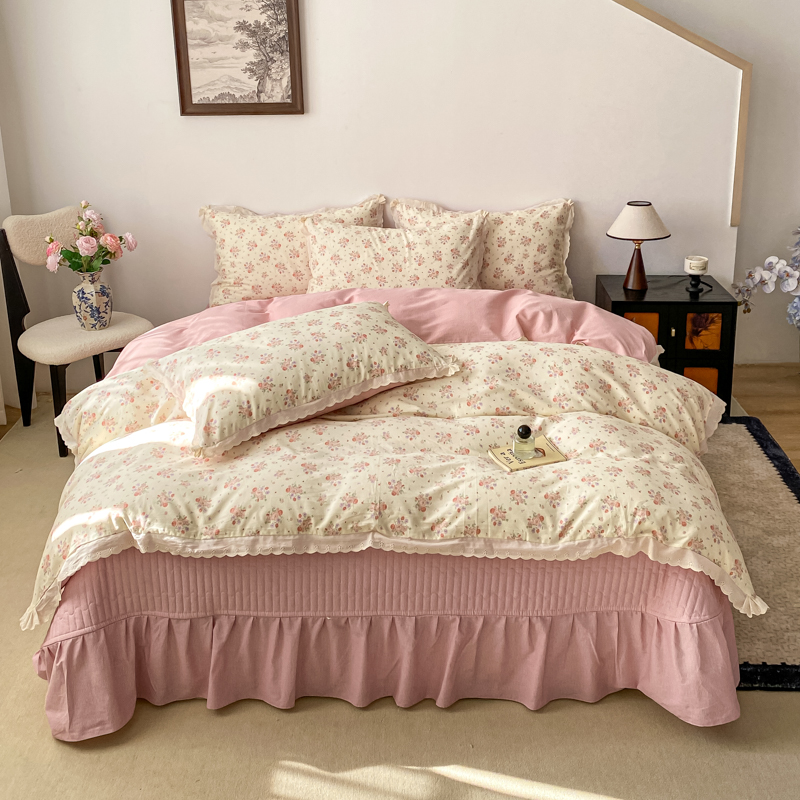 (总)梦可莱家居 2025新款全棉韩版蕾丝边床盖四件套