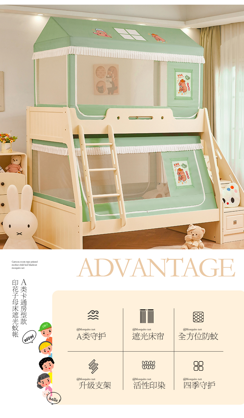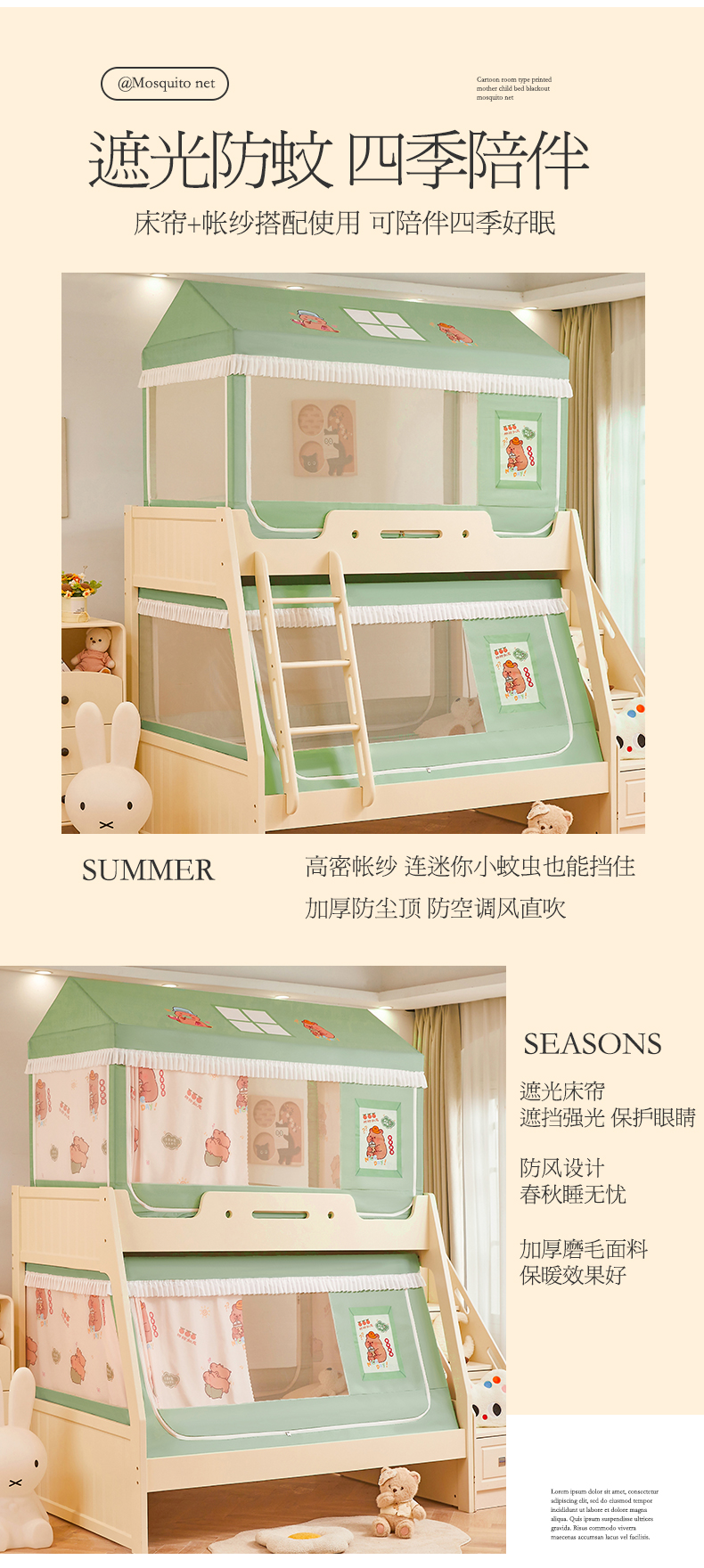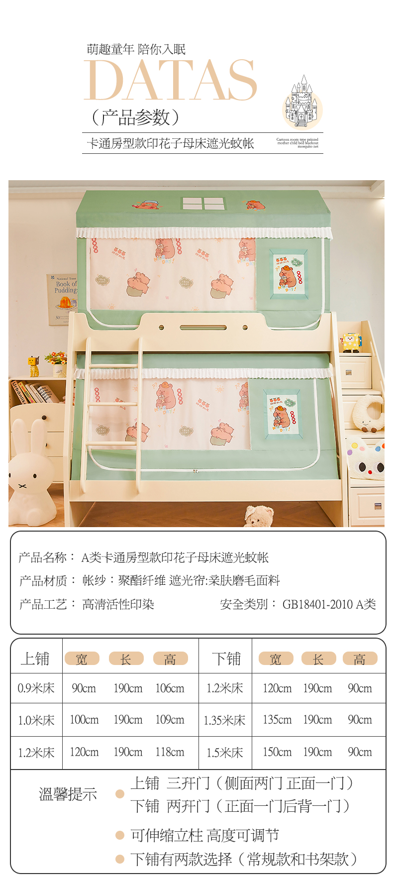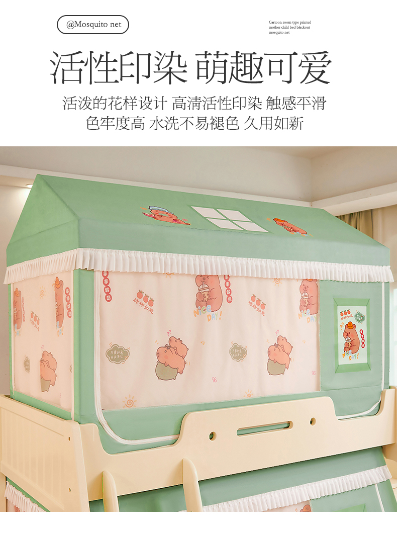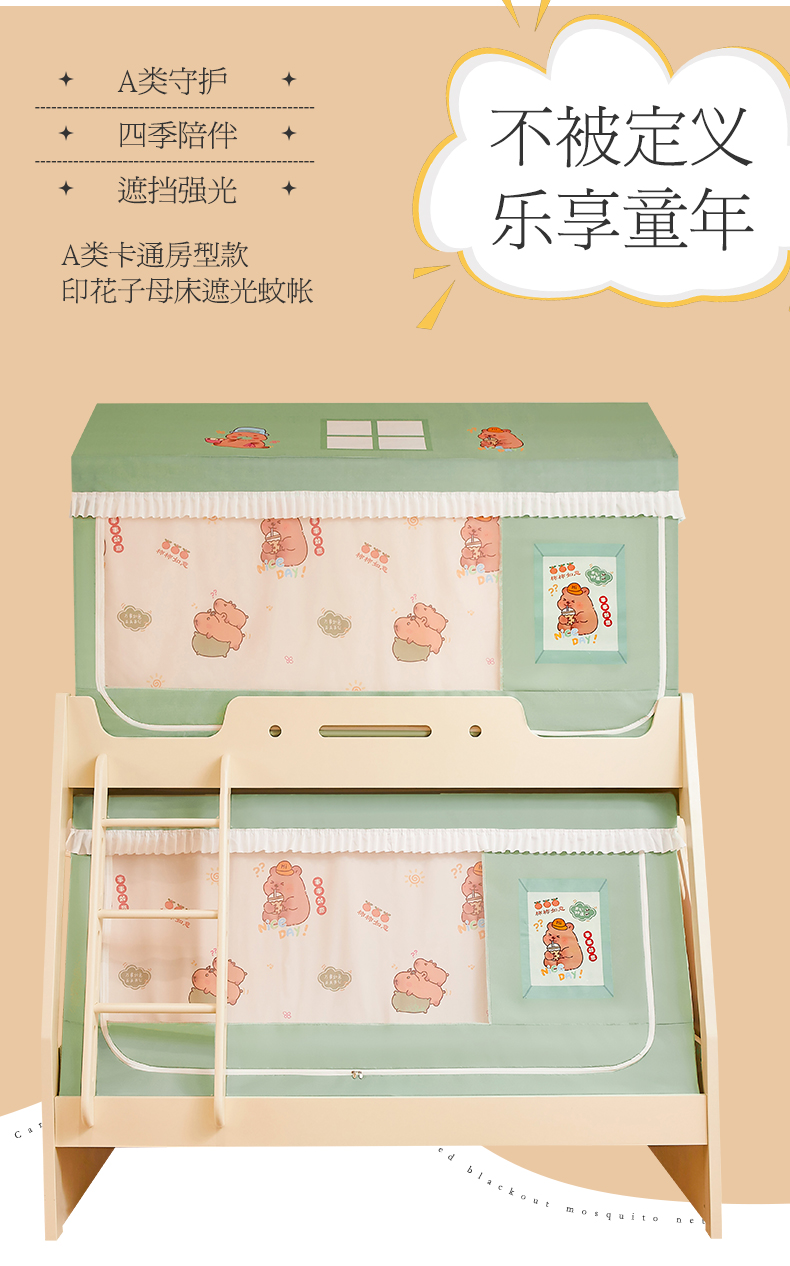 当前位置: 91家纺网 > 商品网购 > 床上用品 > 蚊帐 > 坐床式蚊帐 > 迪凡保罗蚊帐 2025新款2504专版印花遮光帘上下铺子母蚊帐-城堡款 呆萌豚豚
