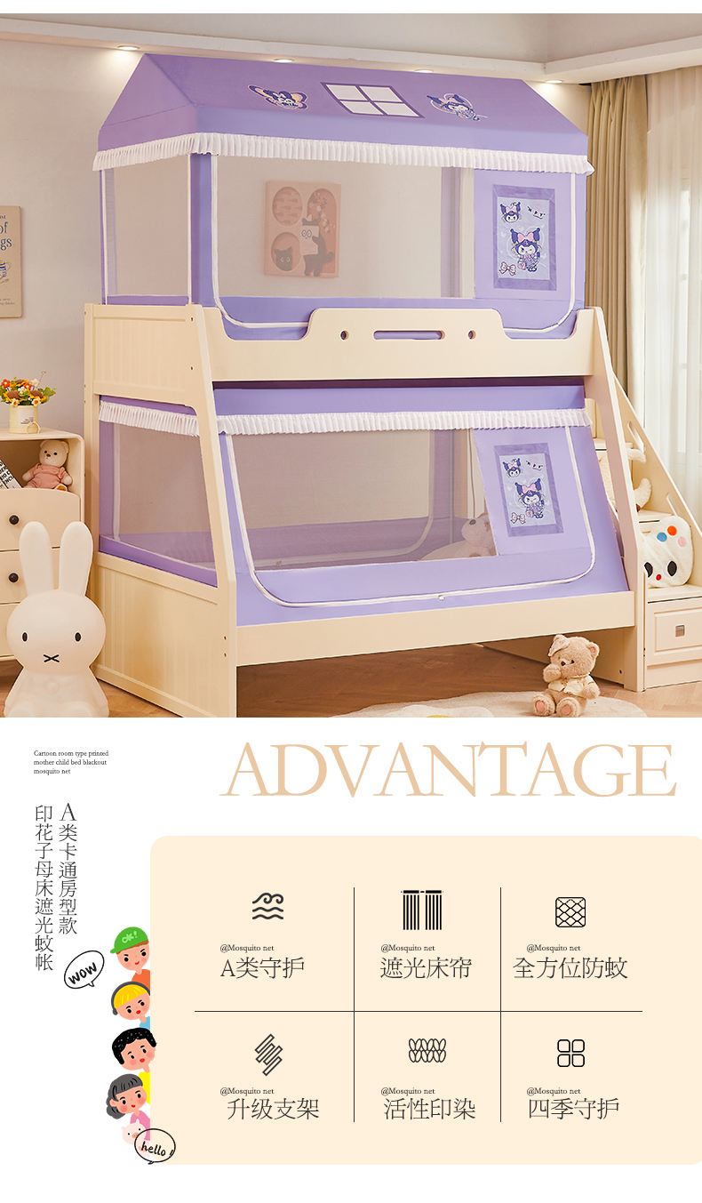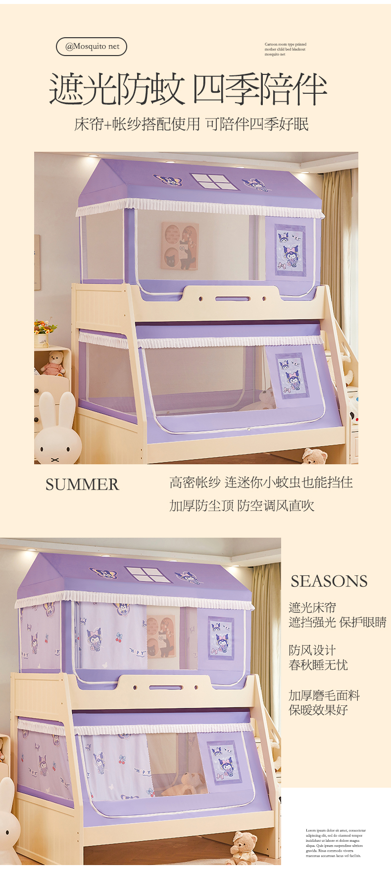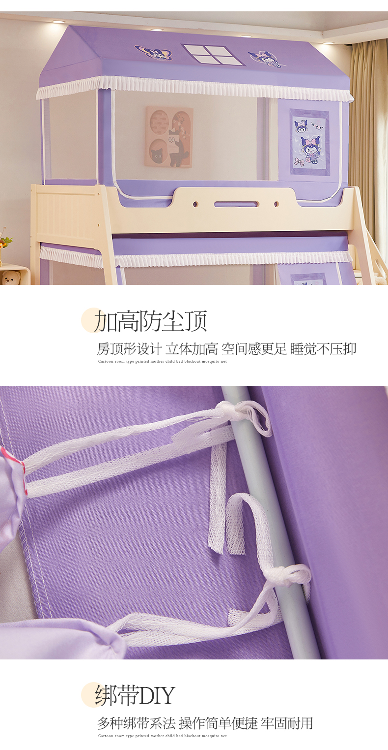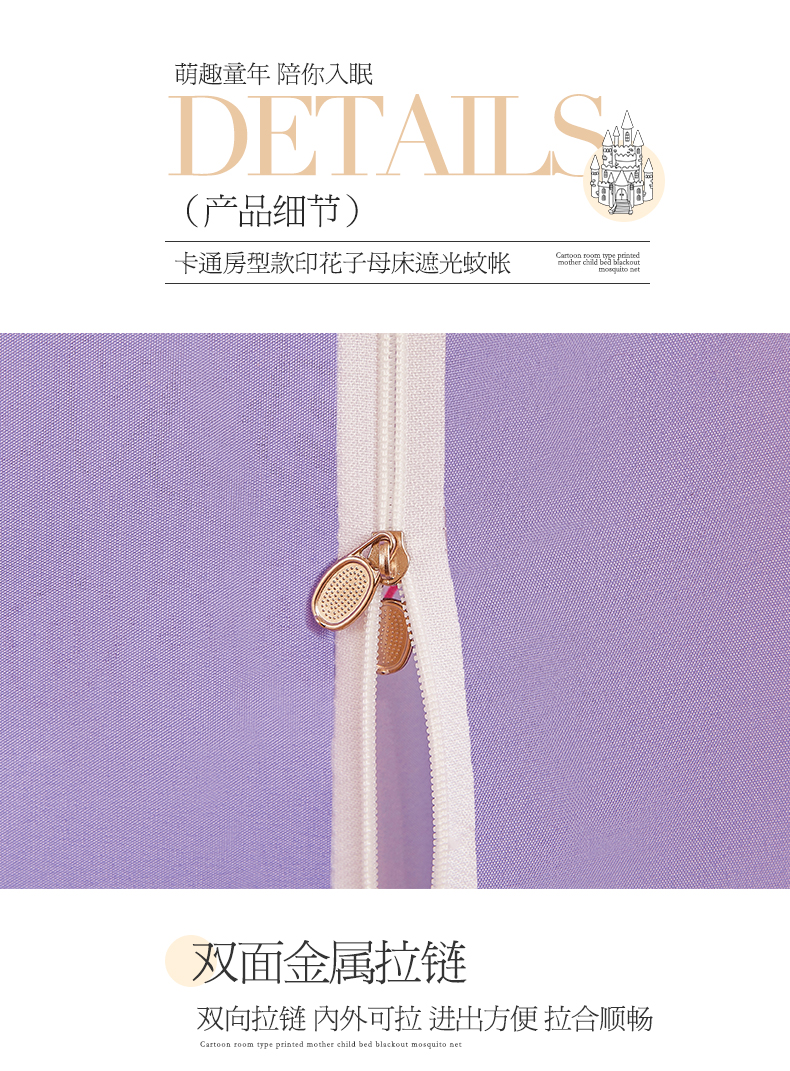 当前位置: 91家纺网 > 商品网购 > 床上用品 > 蚊帐 > 坐床式蚊帐 > 迪凡保罗蚊帐 2025新款2504专版印花遮光帘上下铺子母蚊帐-城堡款 紫色甜心