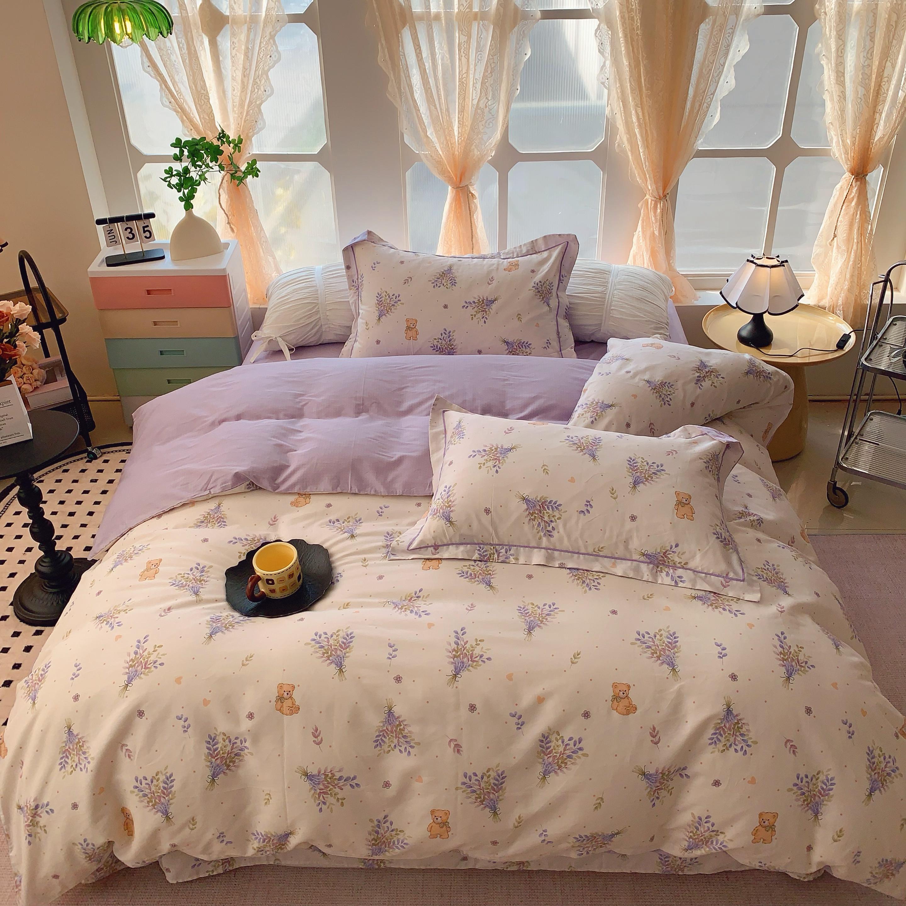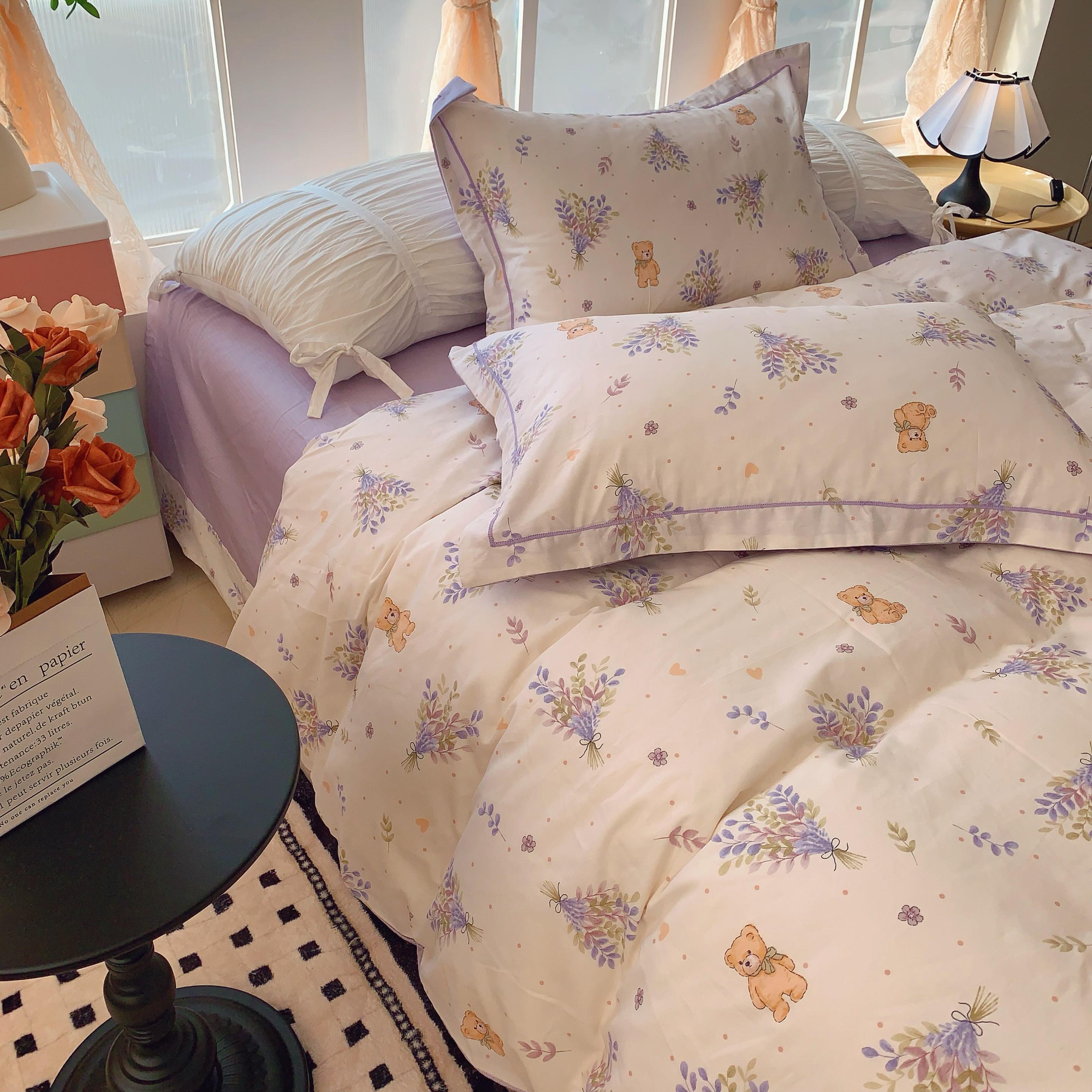 奈萝家纺 2025新款亲肤小清新全棉四件套 松松熊米
