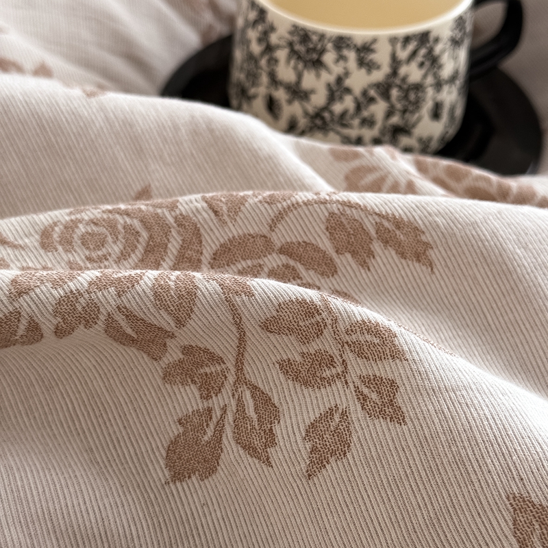 水云缦 2025新款水云缦全棉三层纱色织大提花四件套 长夏咖