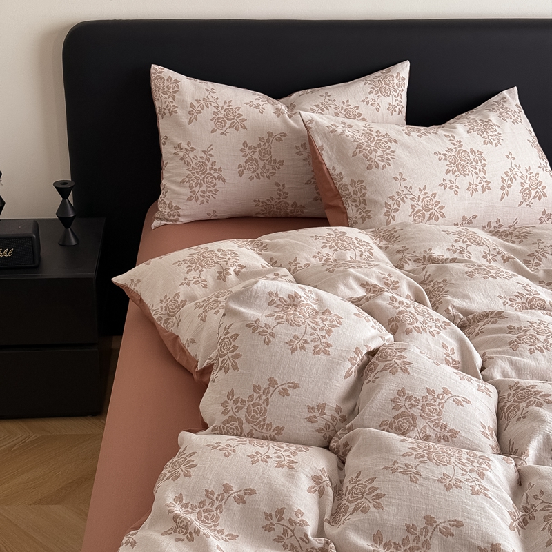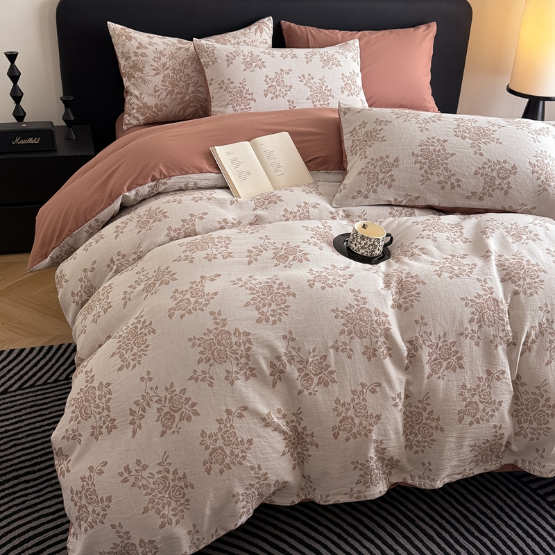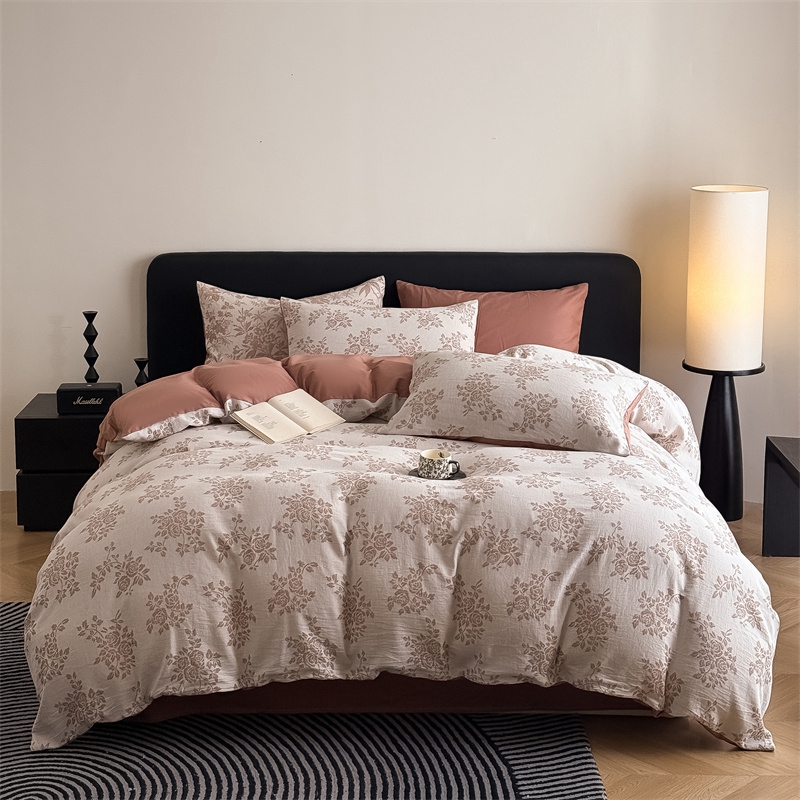 商品名称:水云缦 2025新款水云缦全棉三层纱色织大提花四件套 长夏咖