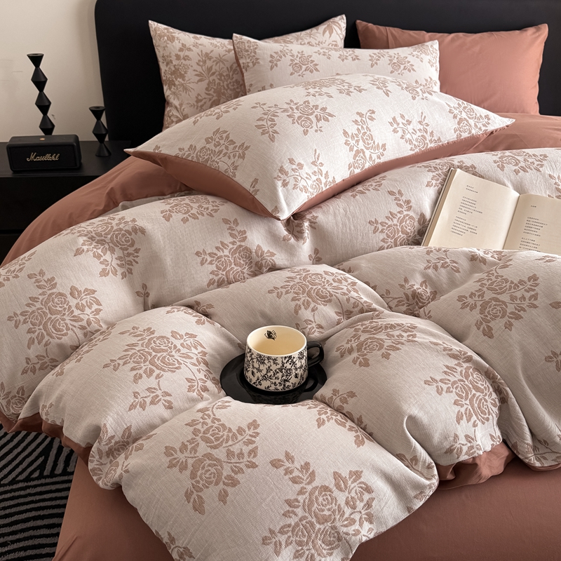 (总)水云缦 2025新款双拼角牛奶绒绣花四件套系列,浅灰-茶褐色,浅卡其-褐色,奶白-褐色,樱粉-茶褐色,褐色-浅卡其