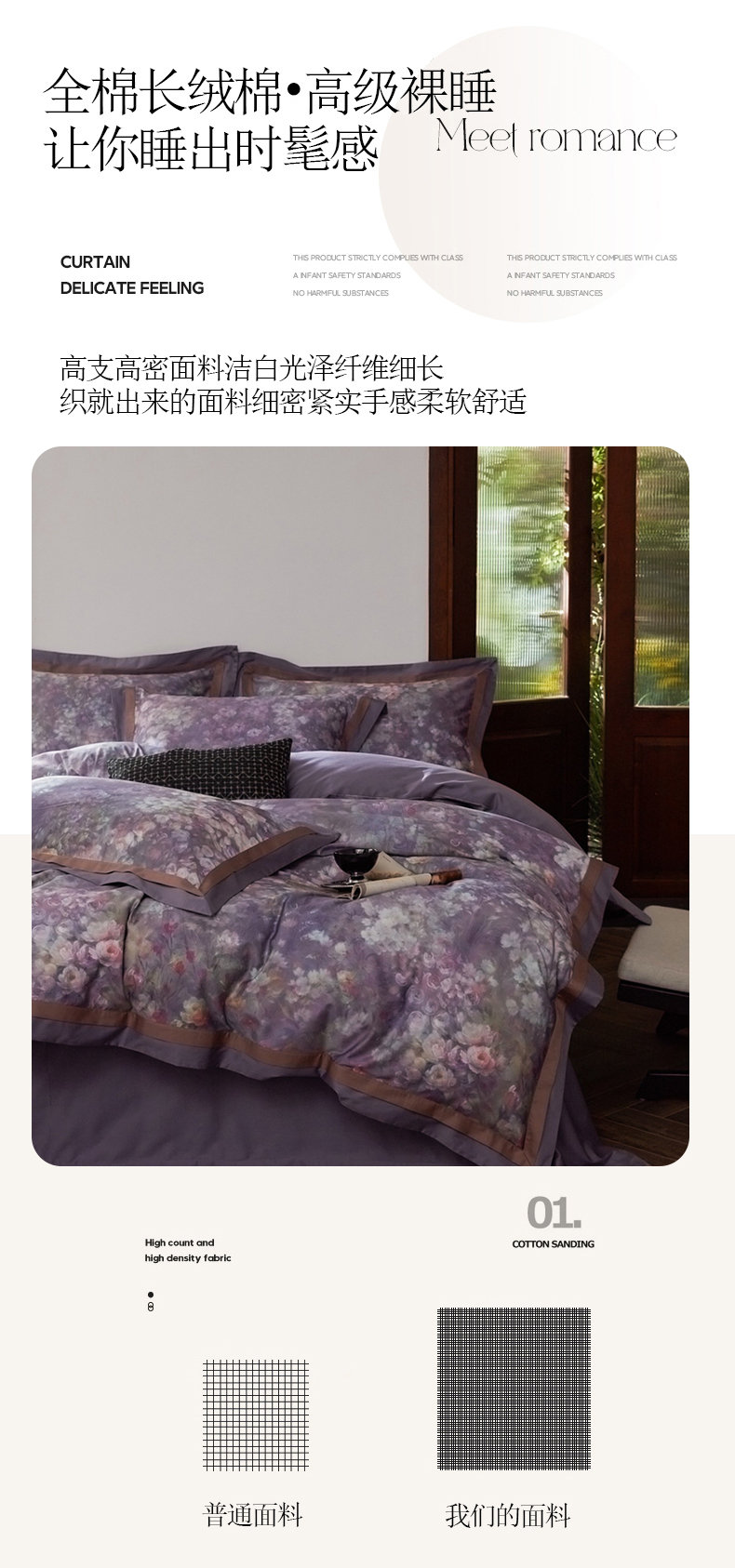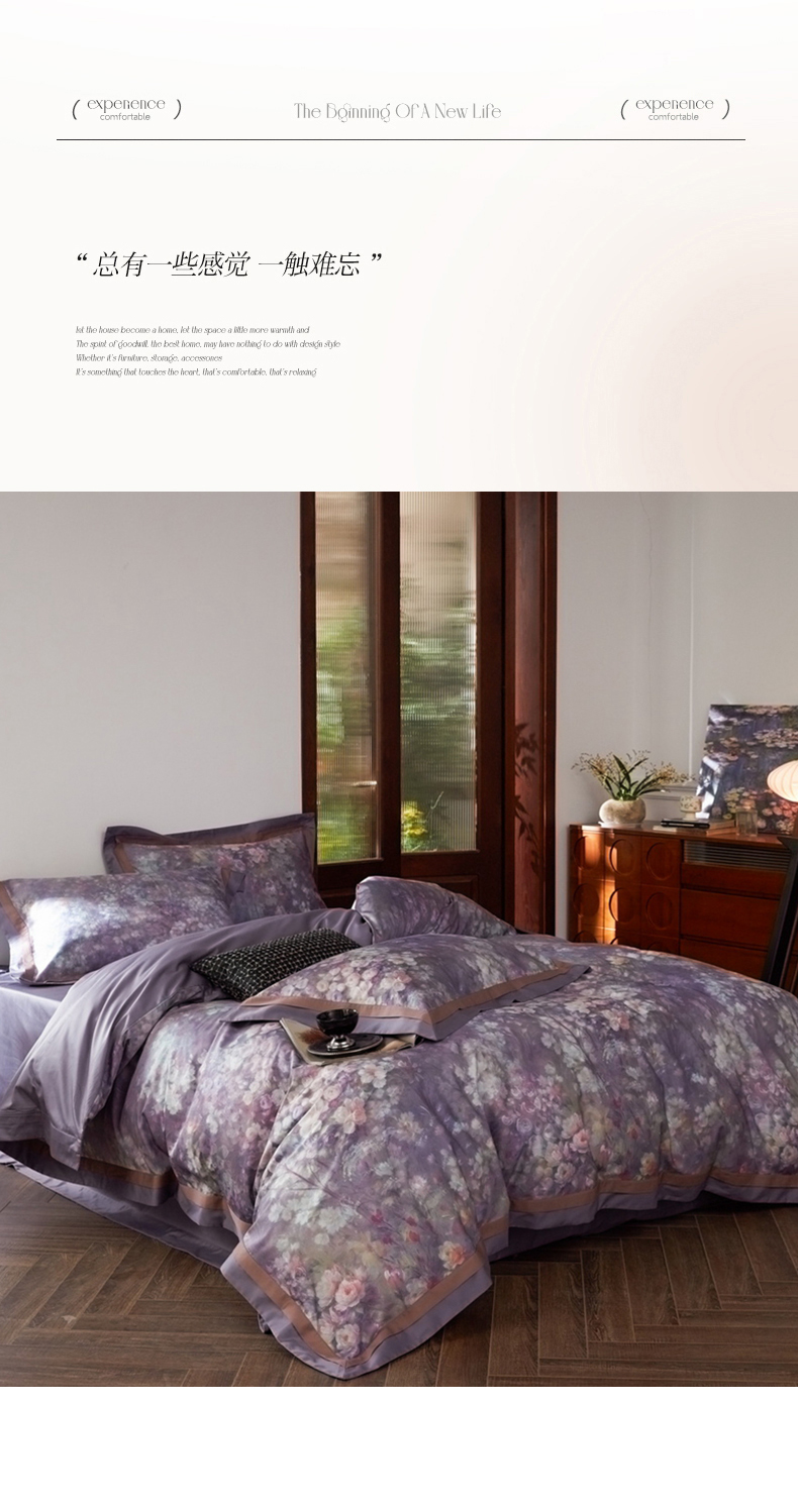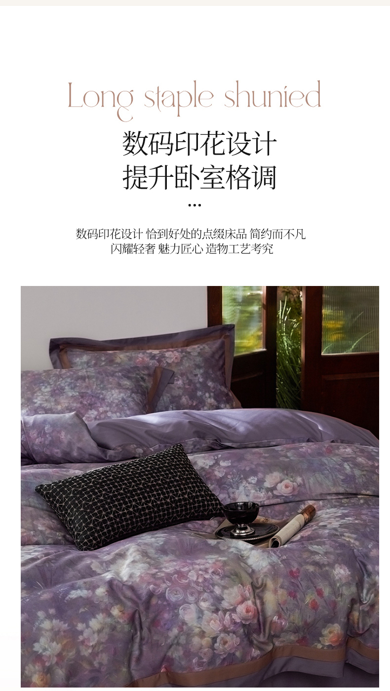 (总)由丽家纺 2025新款亲肤舒适全棉纯棉臻棉数码印花四件套系列,繁花似锦,感棉-粉,金溪-灰,金溪-咖,茂林-兰,明羽-黄,沐恩-绿,野玫瑰-紫,感棉-绿,玫瑰颂-粉