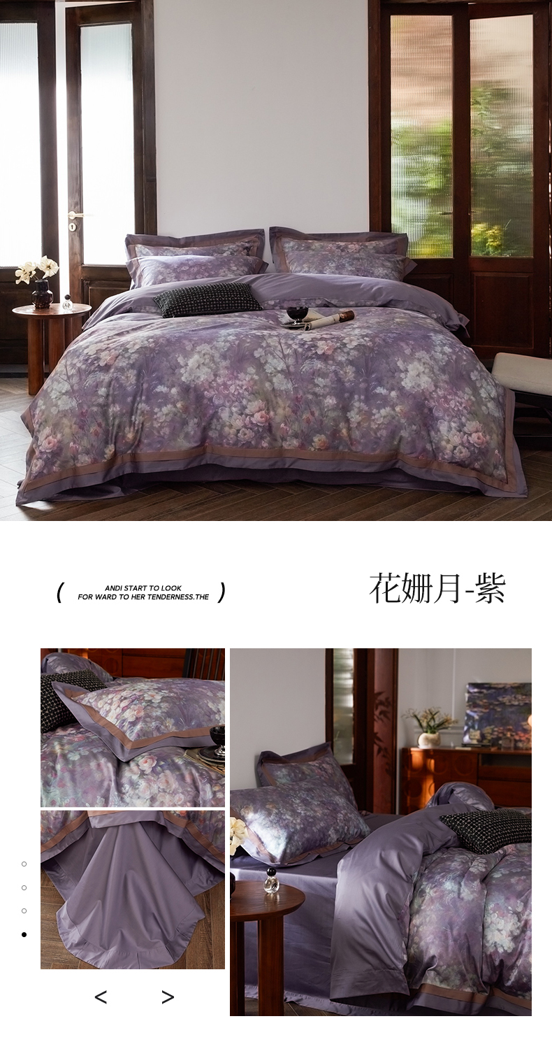 商品名称:由丽家纺 2025新款数码印花四件套 花姗月-紫