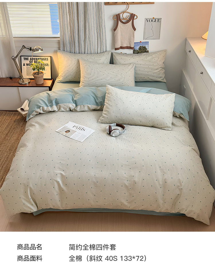 当前位置: 91家纺网 > 商品网购 > 床品套件 > 四件套 > 全棉普通四件套 > 麦伦家居 2025春夏新品全棉斜纹40支13372系列 初遇-绿