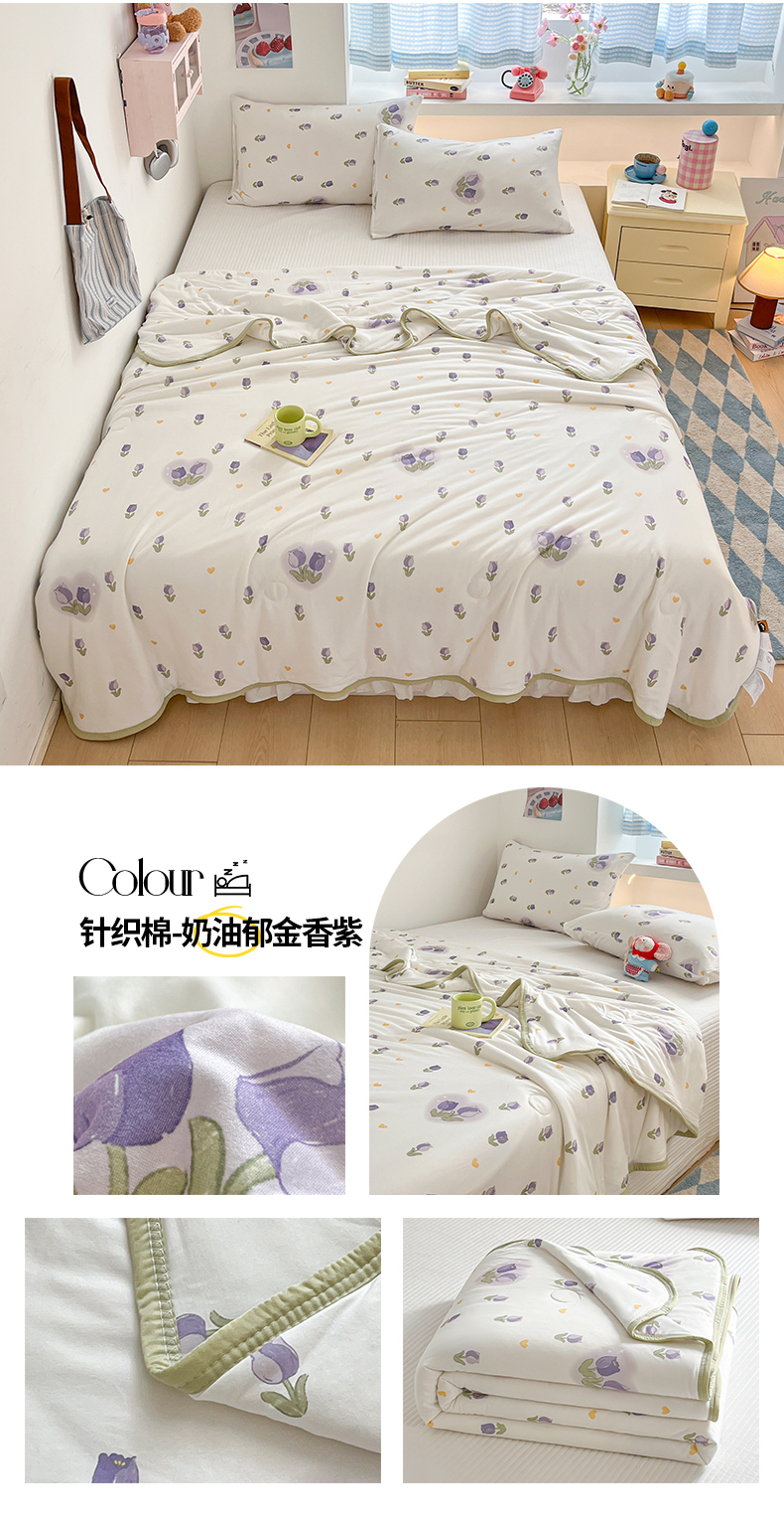 • 91家纺网 家纺一手货源 找家纺 桃子家居  2025新款A类高品质牛奶针织棉软糯大豆夏被 针织棉-奶油郁金香紫