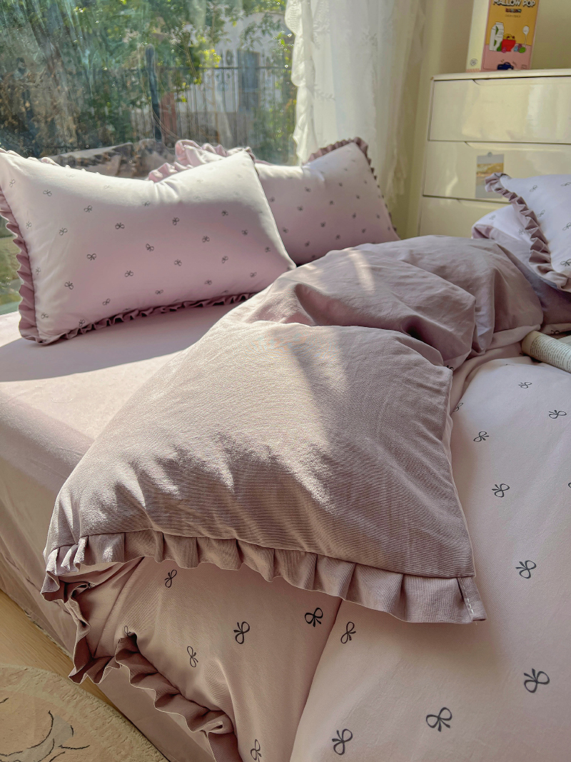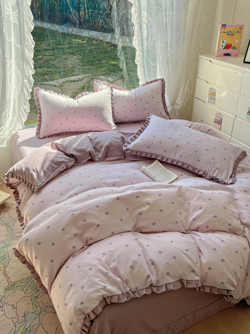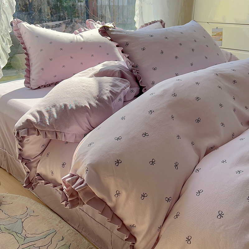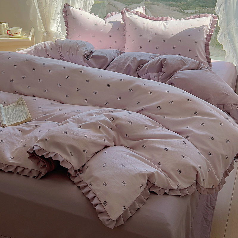 商品名称:欧尚 2025新款针织棉双层纱四件套 洁美紫