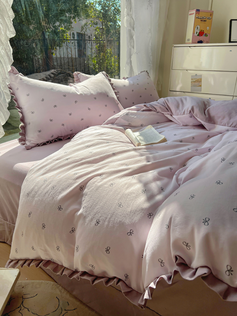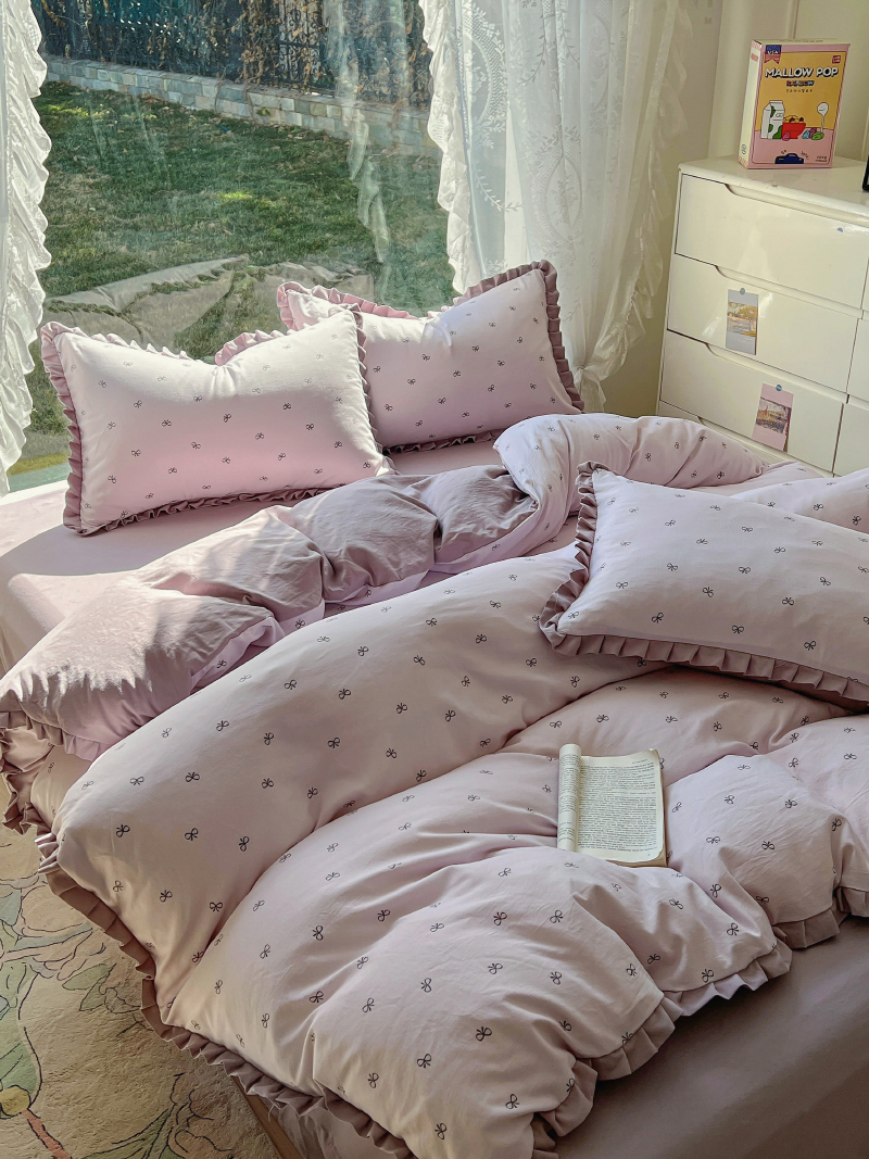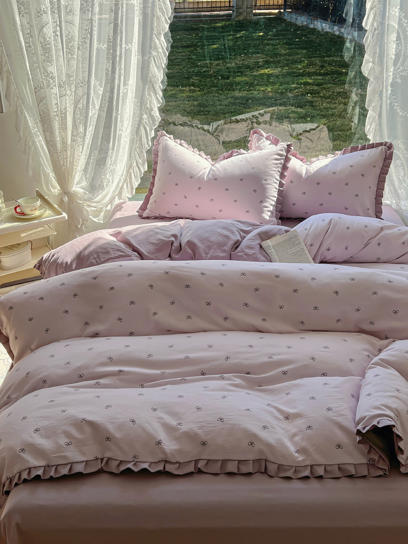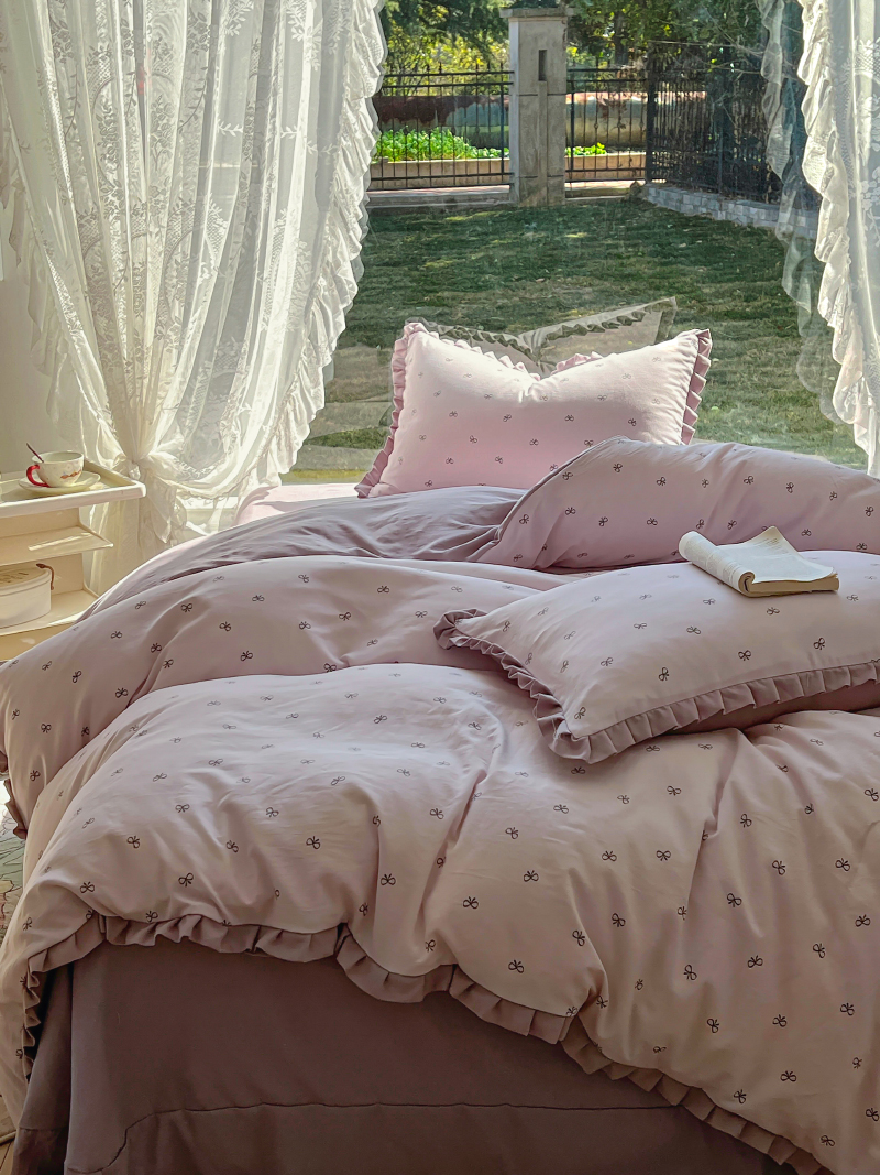 (总)欧尚 2025新款牛奶绒花边床盖四件套,粉点点,花小玉,咖色小心心,蓝点点,慕然,仙女粉,仙女紫