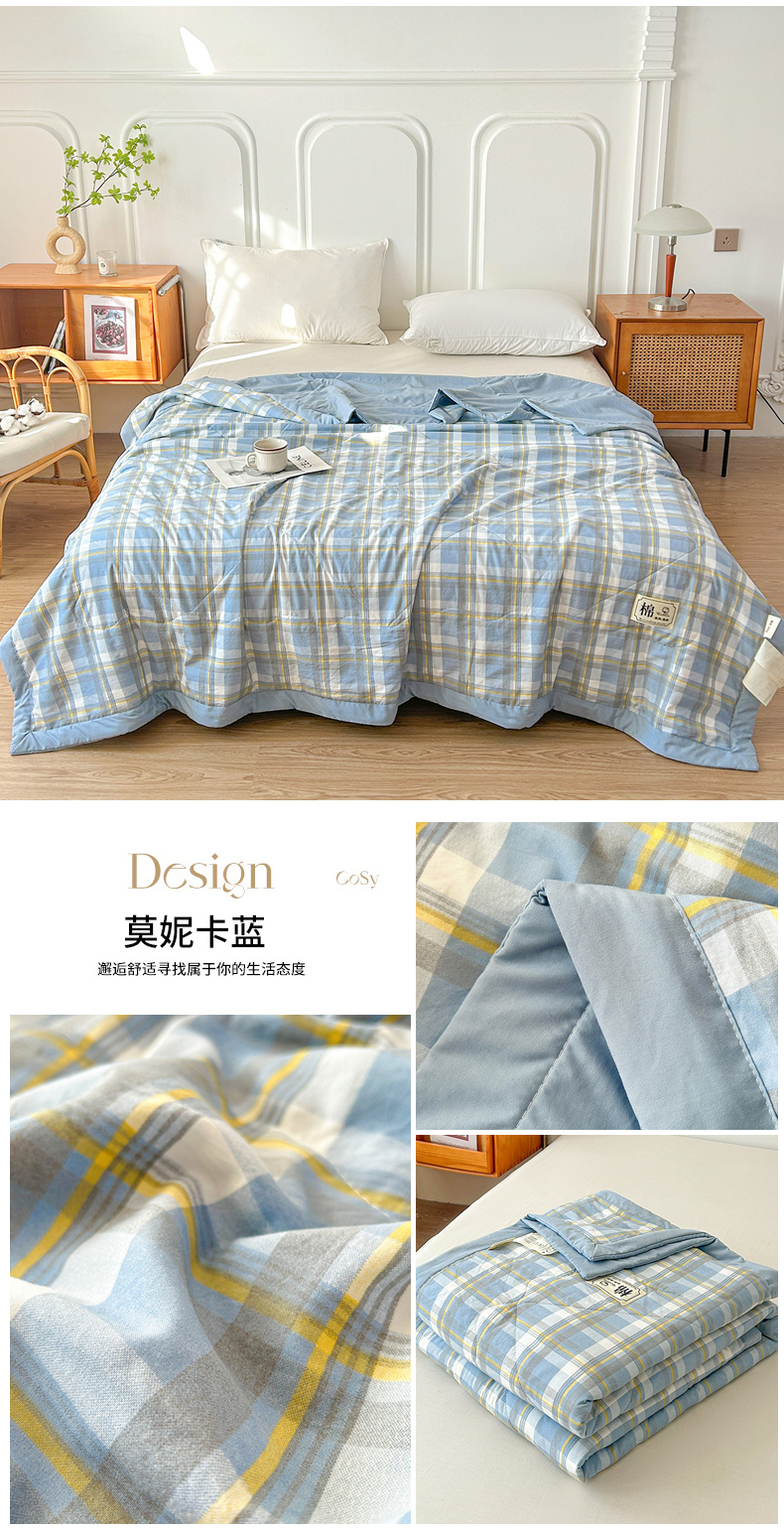 (总)佰丝居 2025新款A类水洗棉夏被100%新疆棉花被空调被夏凉被,粉大格,粉小格,蓝大格,蓝小格,莫妮卡,雅致灰,雅致绿