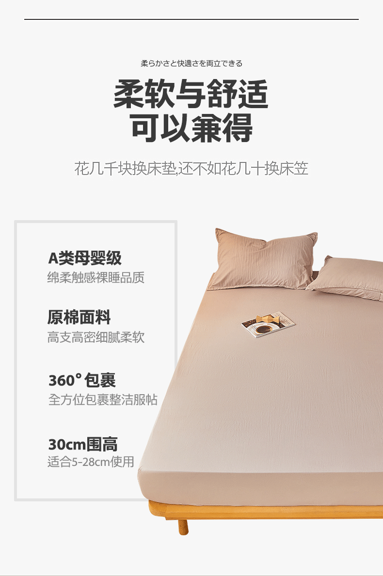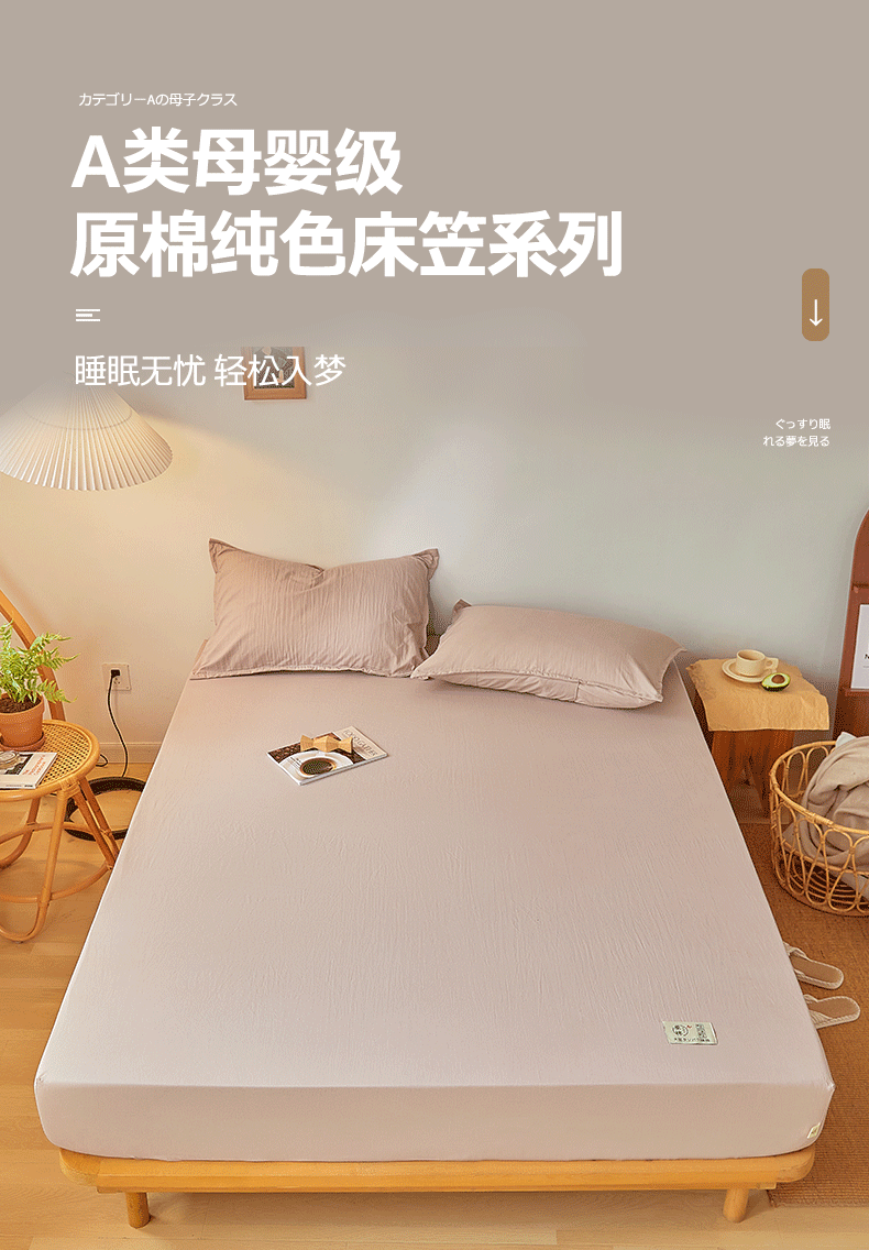 • 91家纺网 家纺一手货源 找家纺 曼陀罗 2025新款原棉纯色床笠系列 米驼色