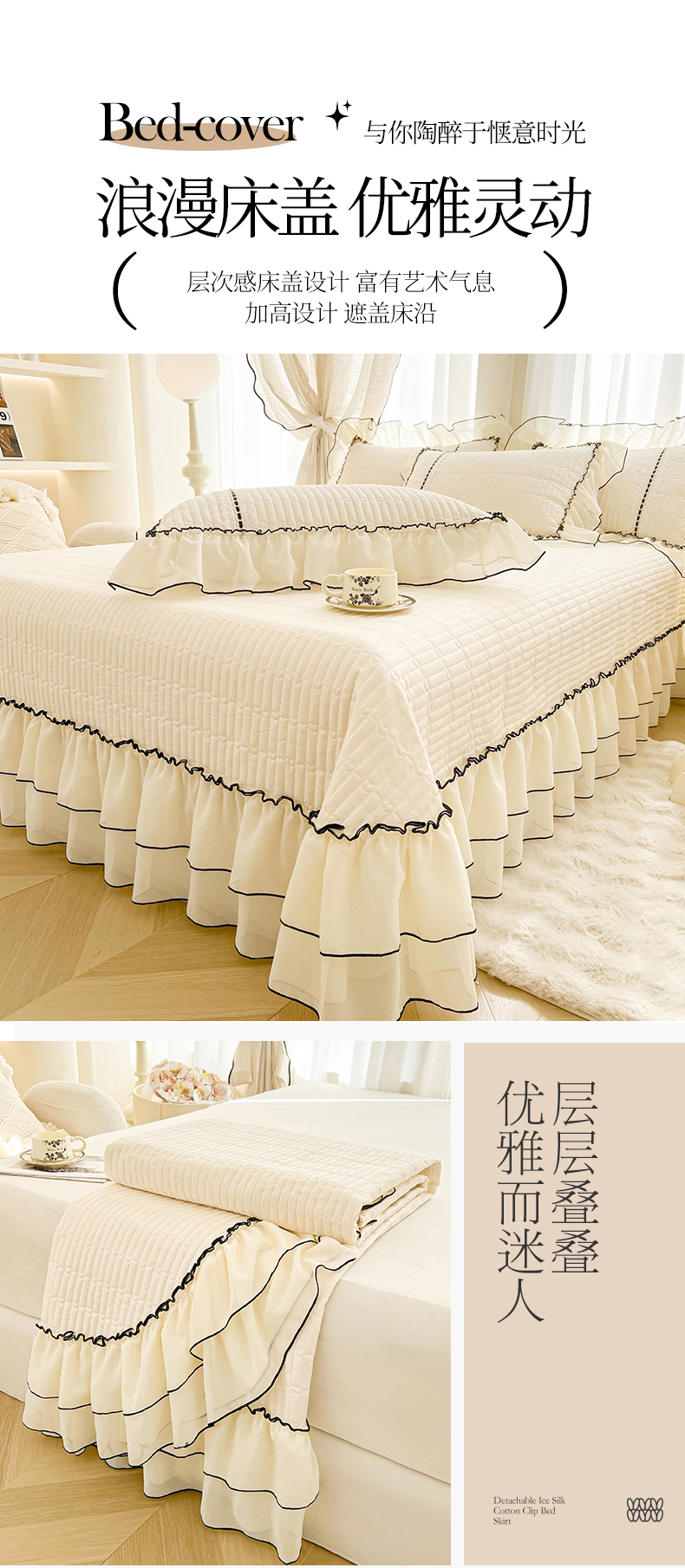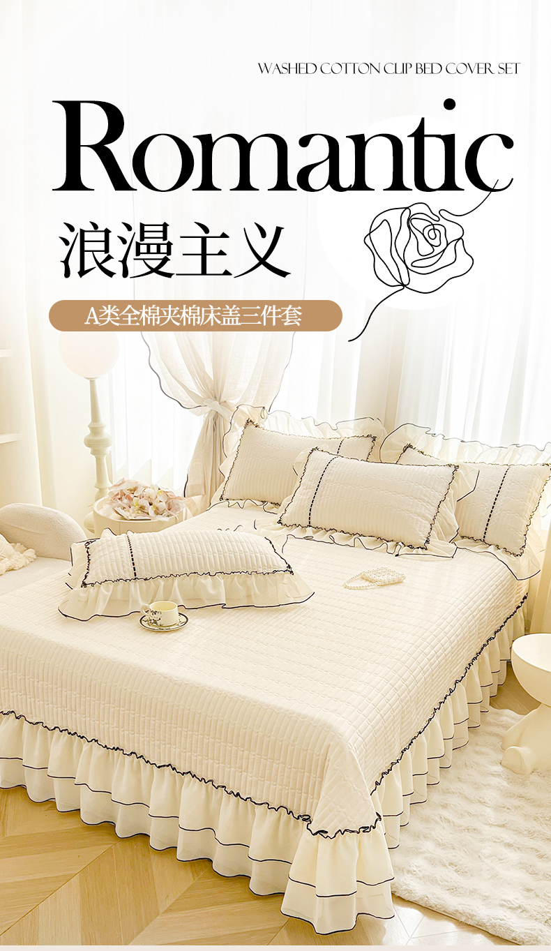 鑫棉坊 2025年新款全棉床盖三件套-花影倾梦 花影倾梦-浅米色