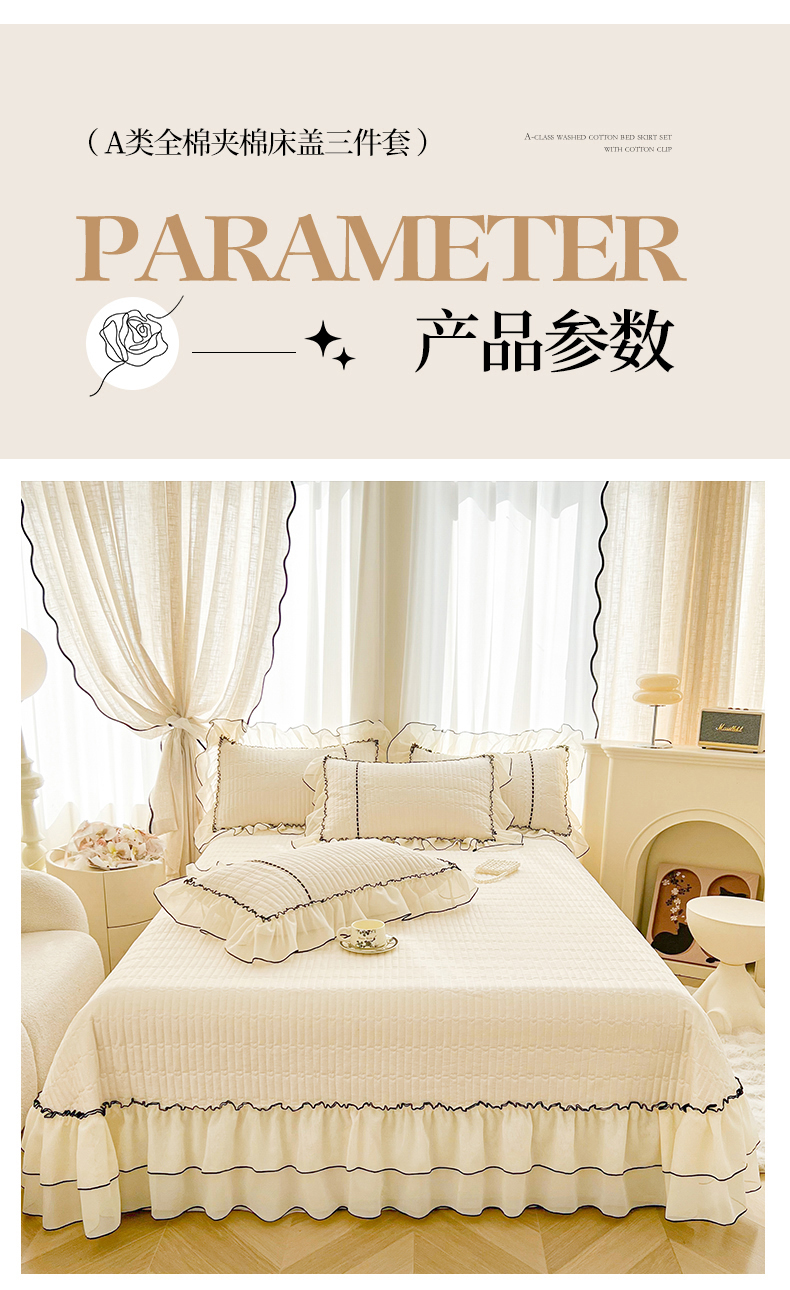 商品名称:鑫棉坊 2025年新款全棉床盖三件套-花影倾梦 花影倾梦-浅米色