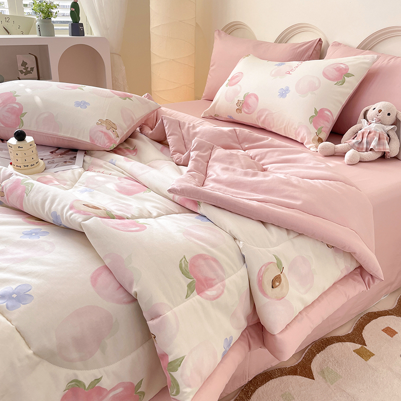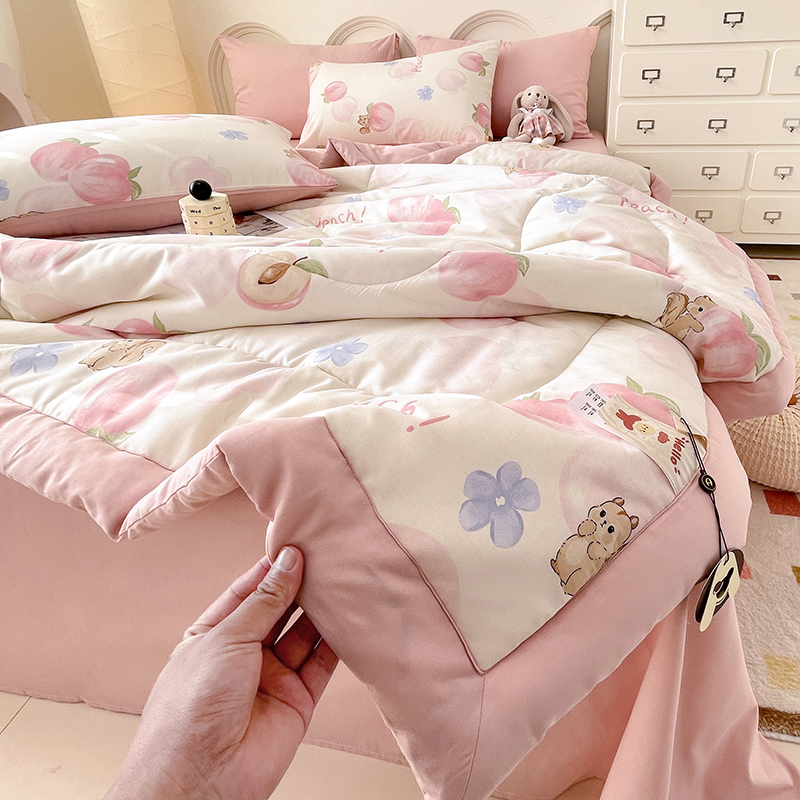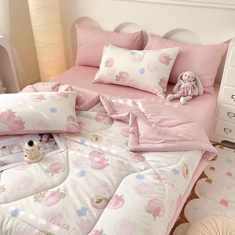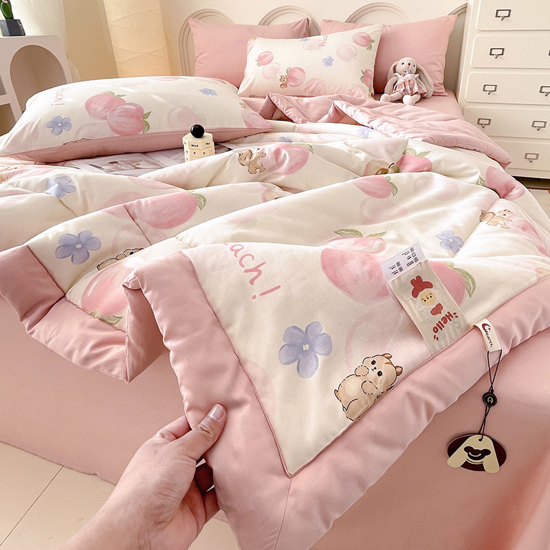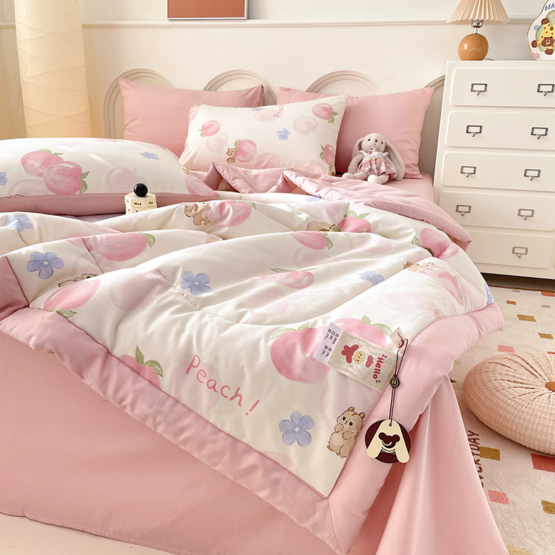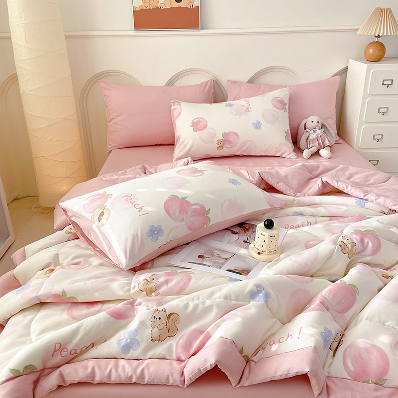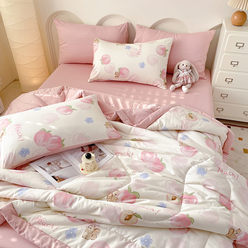 当前位置: 91家纺网 > 商品网购 > 床品套件 > 四件套 > 夏被四件套 > 丫丫家纺2025全棉夏被碎花卡通小清新简约纯棉夏凉被夏被四件套三件套风格三 蜜桃松鼠