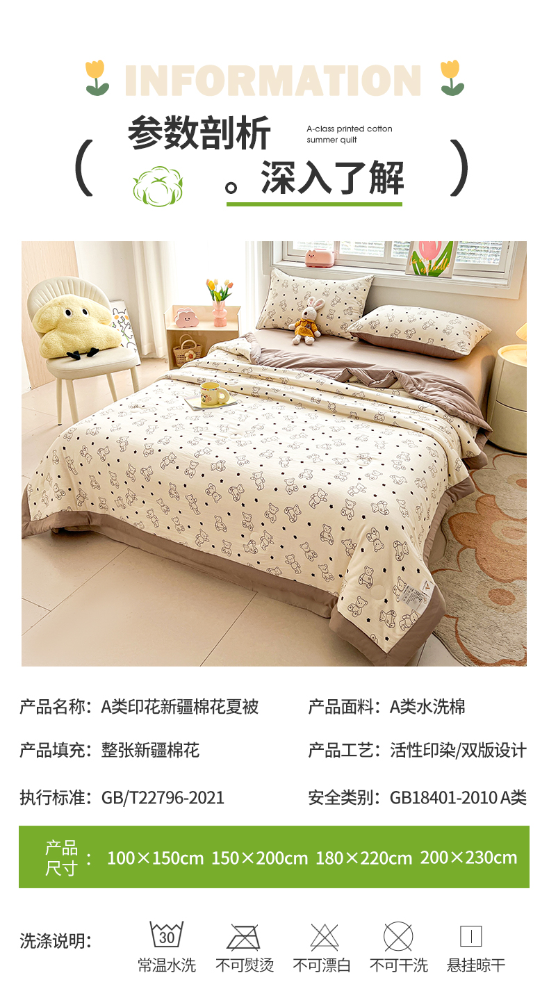 商品名称:晓时候 2025新款水洗棉夏被新疆棉花被印花夏凉被空调被薄被子 小熊院长