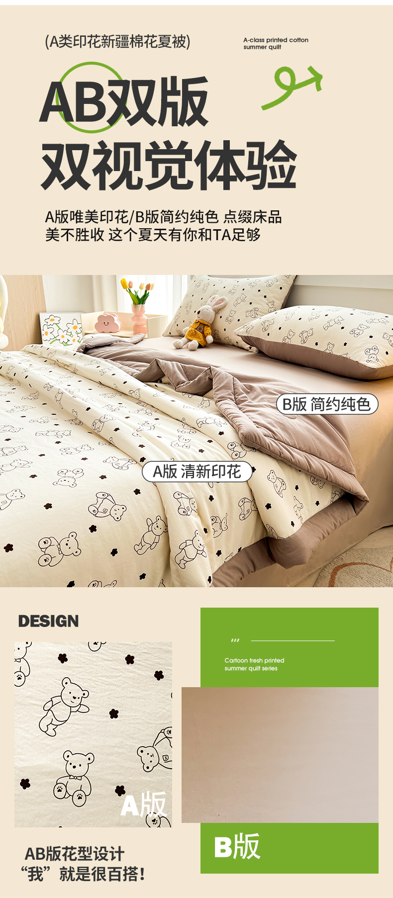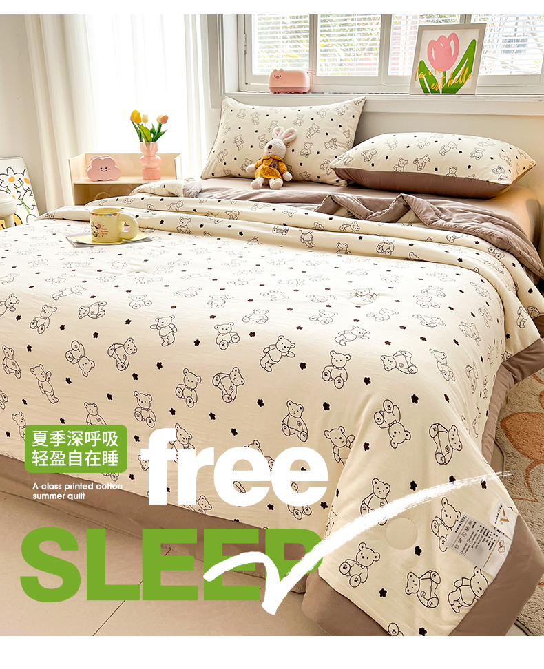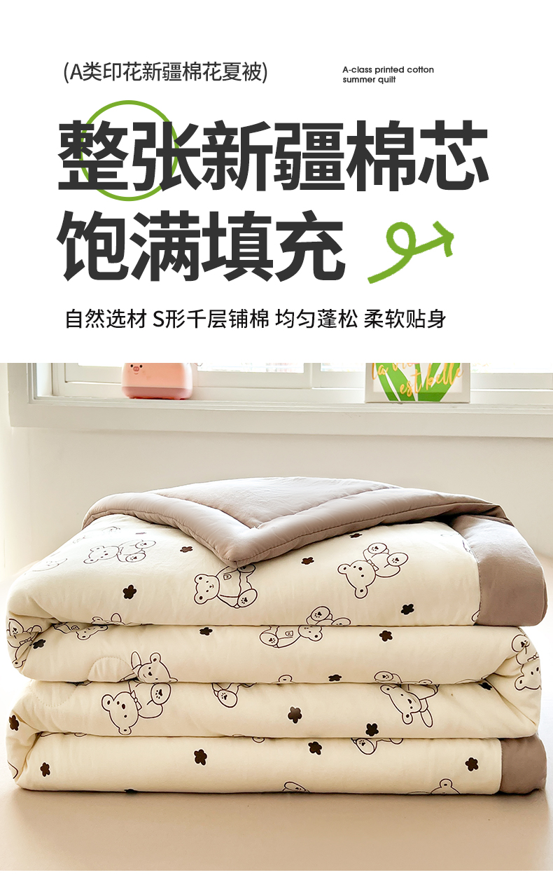 晓时候 2025新款水洗棉夏被新疆棉花被印花夏凉被空调被薄被子 小熊院长