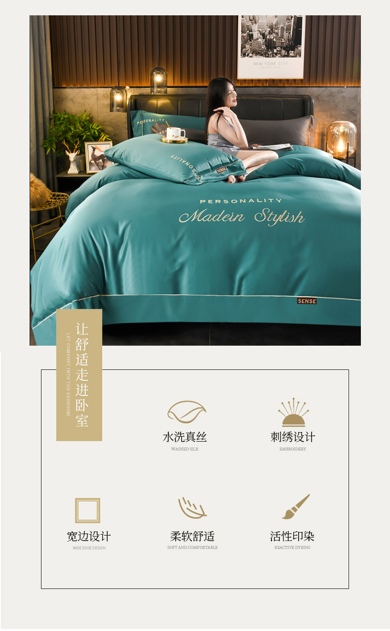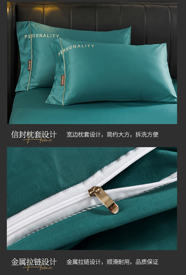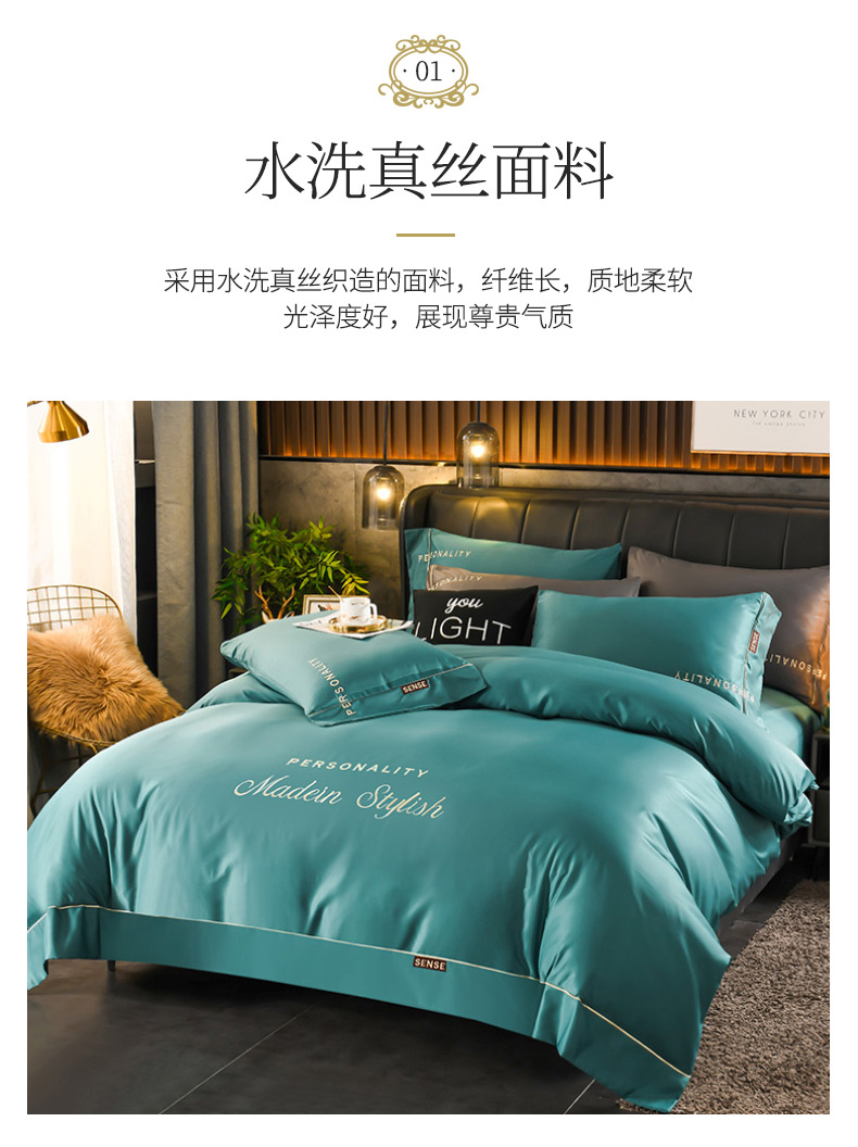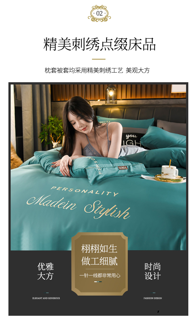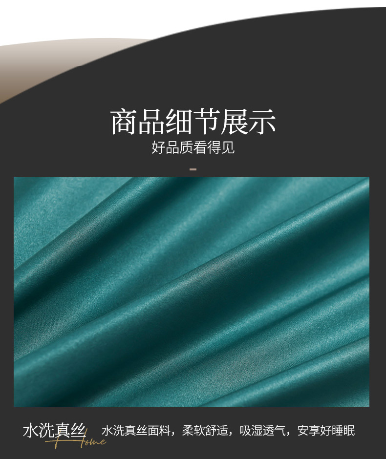 商品名称:睡美人 2025新款水洗真丝高端轻奢绣花款四件套-爱娜 爱娜-孔雀绿